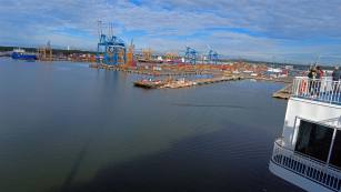 Ein langer Weg führte zum Hafen. Unterwegs fiel uns noch eine Kirche aus. Es ist die lutheranische Cathedrale. Von aussen ist sie ein schönes und grosses Bauwerk. Wie üblich ist in der Region ist das Kircheninnere relativ schlicht ausgefallen. Die Kirche steht jedoch in prominenter Position, besonders schön ist der Blick hinauf vom Snelmann-Park. Es führt eine gerade lange Strasse direkt zum Eingang.