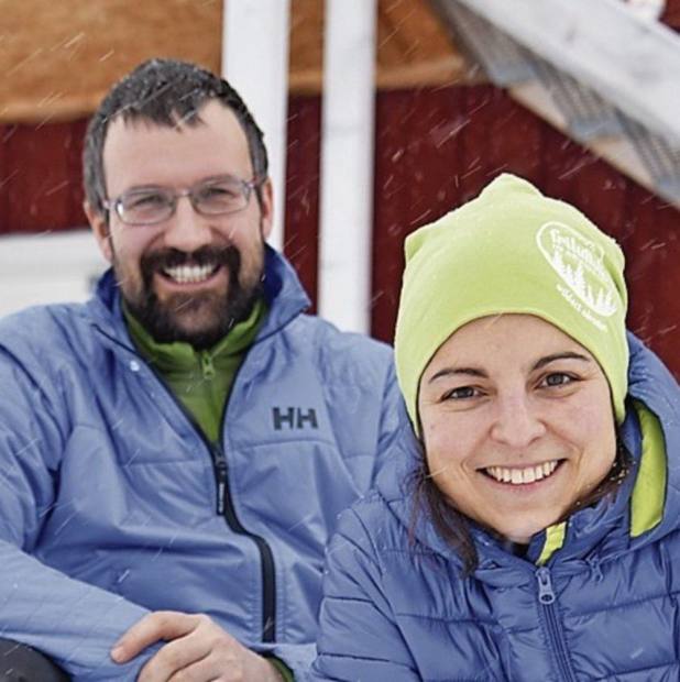 Heute Nacht war das Nordlicht zu sehen. Habe ich leider verpasst. Ich hoffe nochmals auf Morgen. Nach dem Frühstück bei Wildact möchte ich jetzt die Firma oder besser gesagt die Leute die dahinterstecken vorstellen. Hinter Wildact stehen Simone Mendelin und Jürg Eugster. Wir sind beide in der Schweiz geboren und aufgewachsen. In Zürich haben sie ihre Ausbildungen gemacht und einige Jahre auf ihren Berufen gearbeitet. Bei einem halbjährigen Aufenthalt auf einer Huskyfarm in Finnland ist Jürg auf den Schlittenhund gekommen. Die Hunde und der nordische Winter haben ihn verzaubert. Der Zauber ist nach seiner Rückkehr auch auf Simone übergesprungen. So haben sie entschieden, selber Schlittenhunde zu halten und ihr Leben umzustellen. Nach dem sie ein neues zu Hause auf dem Land gefunden hatten, kauften sie einige Monate später die ersten Hunde. Die Huskyfarm sollte Wirklichkeit werden. Mittlerweile ist das Familienunternehmen auf 66 Huskies und 2 Kinder angestiegen.