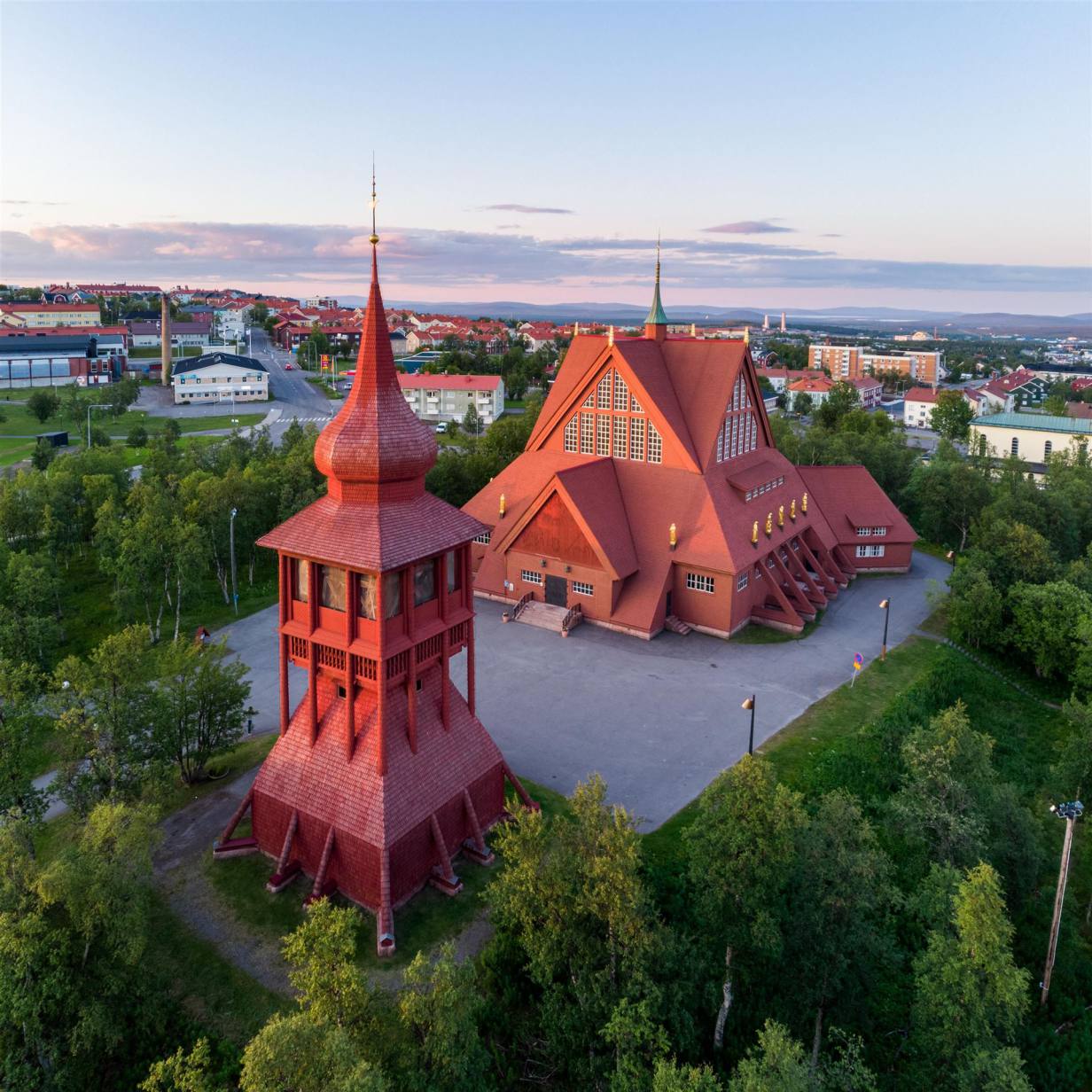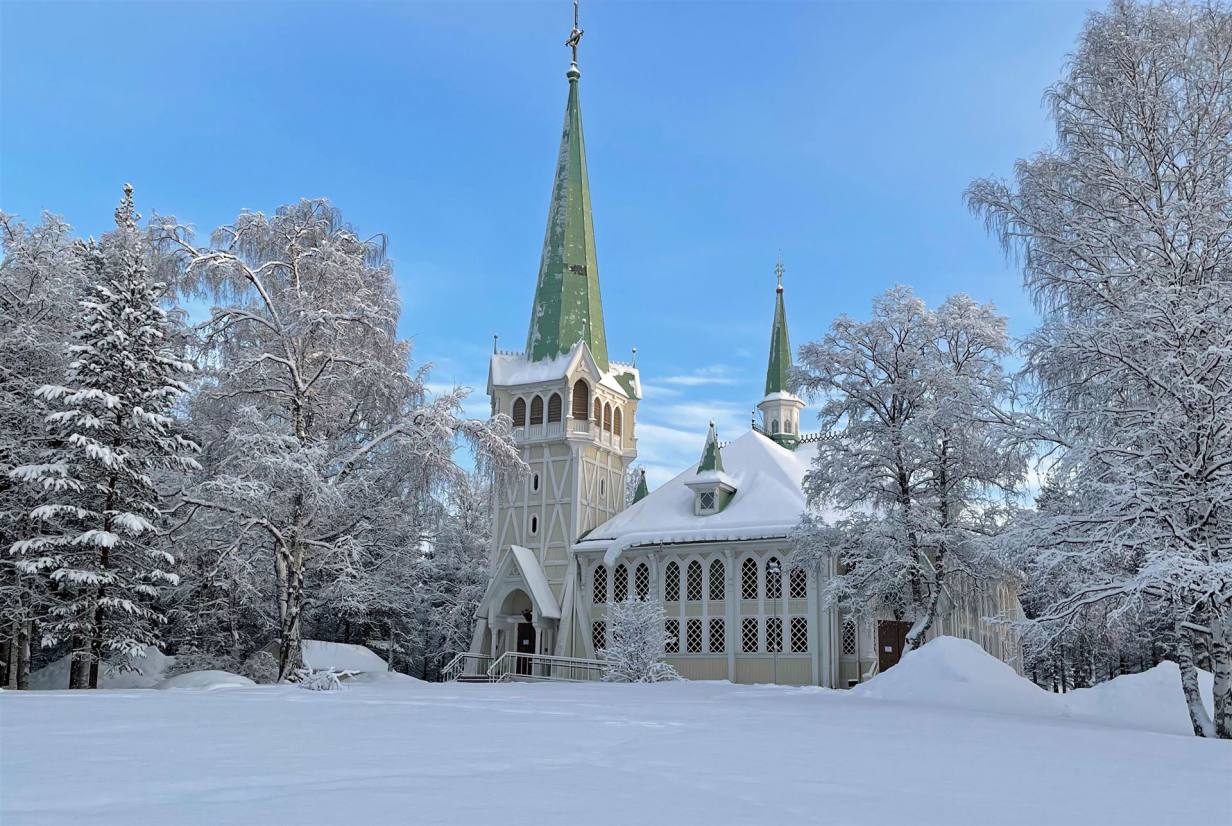 Ebenfalls an der Hauptstrasse fällt die Neue Kirche von Jokkmokk, die im neugotischen Stil erbaut wurde. Obwohl sie Neue Kirche heisst, ist sie eigentlich die ältere der beiden, Die zweite Kirche brannte ab und wurde 1972 neu oginalgetreu aufgebaut. Die Neue Kirche von Jokkmokk, wurde 1887/88 nach Plänen des Architekten Ernst Abraham Jacobsson erbaut und ist ein typisches Beispiel der Holzarchitektur im 19. Jahrhundert. Das Gebäude ist in seinem Grundriss quadratisch, wobei sich in einer Ecke ein Turm erhebt, während zwei weitere Ecken von Eingängen mit Vorhallen. Die Kirche ist eine wunderbare Komposition von Modernem und Vergangenem. Die Kirchenglocken stammen nämlich ursprünglich von der alten Kirche und wurden eingeschmolzen, um in neuer Form im Glockenturm der Neuen Kirche einen Platz zu finden.