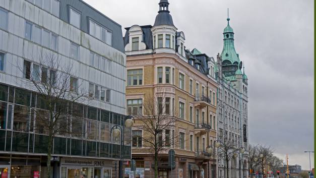 Es hat die ganze Nacht gestürmt. Ich stand an einem windgeschützten Parkplatz, sodass ich von den Windböen in Ruhe gelassen wurde und gut schlief. Geregnet hat es nicht. Nach dem Frühstück fing es dann aber an. Auf der Autobahn musste ich das Steuer mit allen Kräften halten. Der Wind kam von der Baltic See und im Winkel von 90°. Dazu regnete und schneite es zeitweilig heftig. Schon gestern ist mir aufgefallen, dass die Flüsse über die Ufer getreten sind. Viele Flächen auf den Feldern sind überschwemmt. Der Boden ist noch gefroren, aber es hat stark geregnet in den letzten Tagen. Das Wasser ist dadurch oberflächlich abgelaufen. Nach etwas mehr als einer Stunde erreichte ich Malmö. Im Süden von Malmö wo der Campingplatz liegt, kam ich an architektonisch futuristischen Gebäuden vorbei. Ich drehte an einem Kreisel 180° also einmal herum und fuhr zurück zum Zentrum.