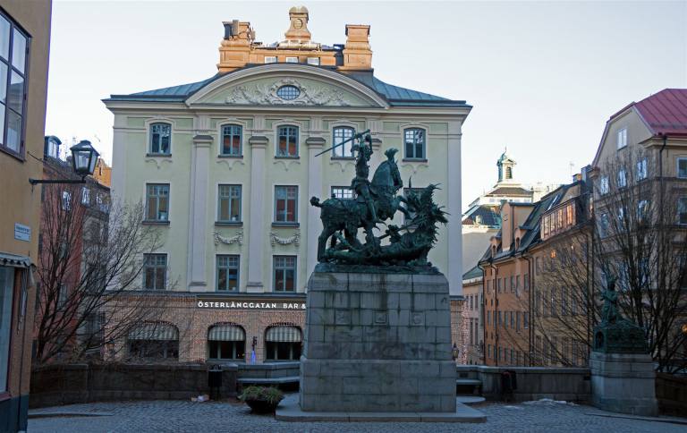 Um halb zwei Uhr war ich bereits auf dem Weg. Vom Platz aus kann man zu Fuss (ca.2 km) ins Zentrum laufen. Mein Ziel Gamla stan ist die auf der Insel Stadsholmen gelegene Altstadt der schwedischen Hauptstadt Stockholm. Die Altstadt auf der Stadtinsel weist noch immer das mittelalterliche Straßennetz mit den von Nord nach Süd über die Insel verlaufenden und schmalen, zum Wasser abfallenden Gässchen auf. Mittendrin befindet sich die deutsche Kirche (Tyska kyrkan). Einen anderen Eindruck machen im Norden der Insel die Paläste der Großmachtszeit wie das Ritterhaus und das im Norden zum Wasser hin gelegene Bondesche Palais, das Oxenstiernasche Palais und das Tessinsche Palais in der Nähe der Storkyrkan, dem Stockholmer Dom, und natürlich das Königliche Schloss, dessen mittlere Achse auf die Norrbro (Nordbrücke) weist, mit der die Altstadt über die Insel Helgeandsholmen mit Norrmalm, dem nördlichen Ufer, verbunden ist. Ein Großteil der Altstadt ist allerdings autofrei.
