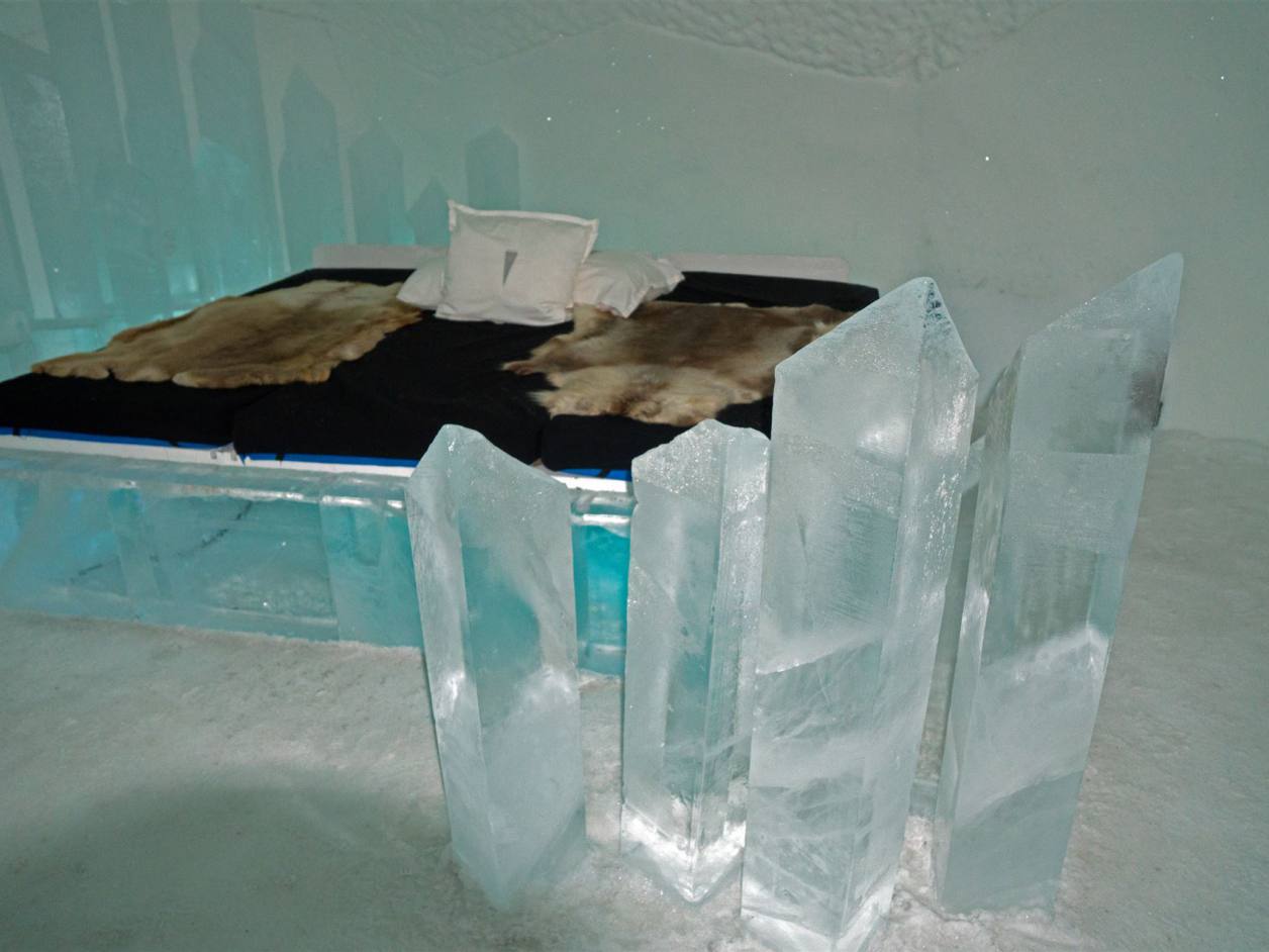 Das einzigartige ICEHOTEL, ein Kunstprojekt, das zum Hotel wurde und in Jukkasjärvi, einem winzigen Örtchen 200 km nördlich des Polarkreises liegt, gibt es bereits seit über 30 Jahren. Und zwar jedes Jahr erneut. Das komplett aus Eis aus dem Fluss errichtete Hotel erstreckt sich über 2.100 Quadratmeter und seine Zimmer werden jedes Jahr von neuen Künstlern neu gestaltet. Wenn im Frühjahr die Temperatur steigt, schmilzt es und kehrt wieder in den Fluss zurück. Jeden Winter werden Eisblöcke aus dem gefrorenen Torne Fluss in Jukkasjärvi geschnitten. Handwerker und Künstler machen sich ans Werk und nach monatelangem Hacken, Sägen, Skulptieren und vermutlich jeder Menge Schnäpse und blauer Daumen sind das ICEHOTEL und die ICEBAR fertig. Nur um einige Monate später im Frühling zu schmelzen! Einige Zimmer sind individuell von den Künstlern aus Eis geformt. Jedes Zimmer ist anders.