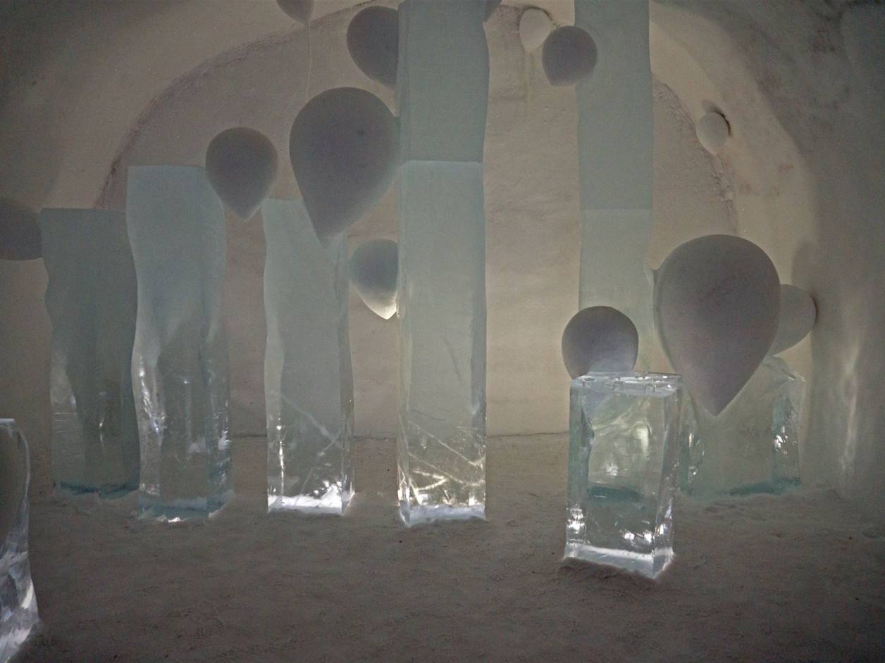 Kein Morgen ohne Überraschung. Das Wetter App zeigte für heute bewölkt an. Als ich die Rollanden rauf schob war es strahlend blau. Damit musste ich meine Planung von heute über den Haufen werfen. Ich wollte eigentlich wieder gegen Süden starten. Kurzentschlossen geht nun mein vorbereiteter Plan noch bis Abisko resp. Björkliden zu Fahren auf. Aber zuerst kommt noch der Besuch des Icehotels, wo ich praktisch vor dem Hotel übernachtet hatte.