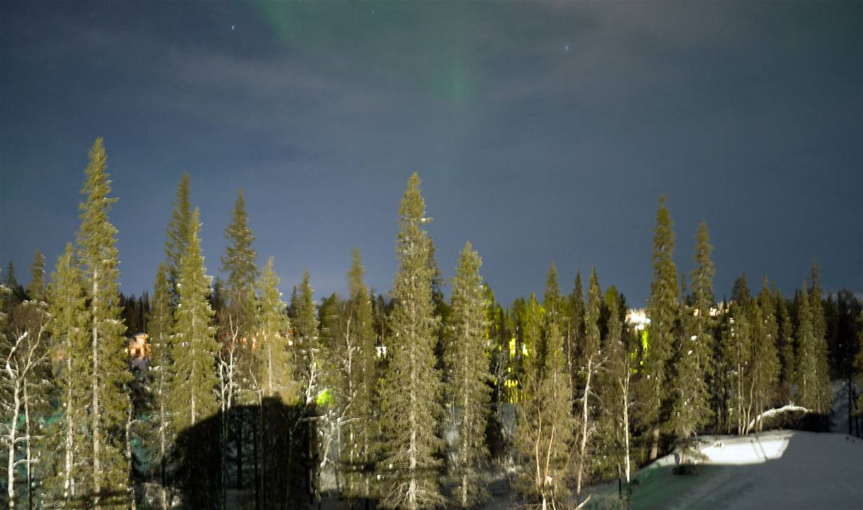 Es war eine windige Nacht. Der Himmel klarte auf und gemäss meiner APP sollen Nordlichter sichtbar sein. Bei dem eisigen Wind war mir nicht zu Mute um nach Draussen zu gehen. Nachteilig war auch, dass das Skigebiet voll beleuchtet war. Trotzdem habe ich um Mitternacht aus meinem Wohnmobil das untenstehende Bild geschossen.