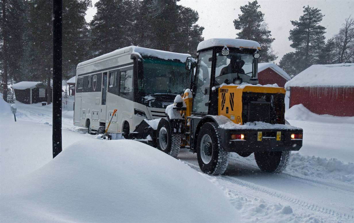 Gestern wollte ich kurz vor Blattniksele tanken. Aber wo ist der Schlüssel vom Tank ? Ich wusste nicht mehr wo ich ihn zuletzt versorgt hatte. Normalerweise habe ich ihn in der Skijacke mitgenommen. Da war er aber nicht. Ich habe alle Taschen und Fächer im Wohnmobil abgesucht. Negativ. Kein Schlüssel. Ich habe die Not APP von IVECO aktiviert und bekam schnell Hilfe in Deutsch von Italien. Sie rieten mir nach Umea zu fahren und gaben mir eine Adresse. Da es Abend war konnte ich sowieso nichts mehr anrichten. Gestern und in der Nacht heute hat es andauernd geschneit. Am Morgen hatte es ca. 20 cm neuen Pulverschnee. Nach dem Frühstück holte ich den Besen aus der Garage um mich vom Schnee zu befreien. Da lag der Rucksack von der Wanderung mit den Schneebrettern. Sicherheitshalber nahm auch diesen unter die Lupe. Und was fand ich ? Die wichtigen Schlüssel damit ich meinen Dieseltank wieder füllen konnte. Schreck las nach. Ich war befreit und startete von meinem Stellplatz im tiefen Neuschnee. Keine gute Idee. Ich steckte sehr schnell Tief im Schnee und kam weder Vorwärts noch Rückwärts raus.