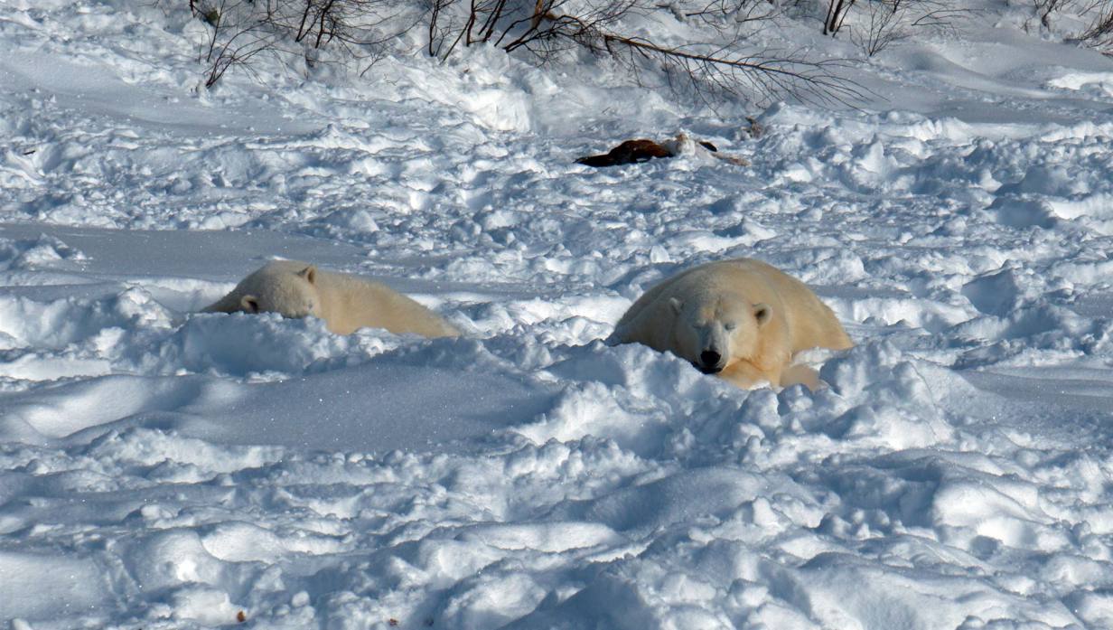 Im Orsa Raubtierpark gibt es auch Eisbären zu sehen. Die Eisbären-Anlage ist eine der größten der Welt. Auf knapp 40.000 m² sollen hier nach und nach immer mehr Eisbären ein Zuhause finden. Ziel ist es, eine europäische Eisbären-Zucht zu etablieren. Die ersten Bewohner der Station waren die Eisbärdame Ewa (geboren 26.11.2006) aus dem Zoo Rotterdam und der Eisbär Wilbär (geboren 10.12.2007) aus dem Stuttgarter Zoo “Wilhelma”. Ich hatte das Glück zwei Tiere im Schnee zu sehen. Die Eisbären haben sogar eine eigene Schneekanone für den Sommer. Jetzt ist es nicht nötig, da es gegen einen halben Meter Schnee hat.