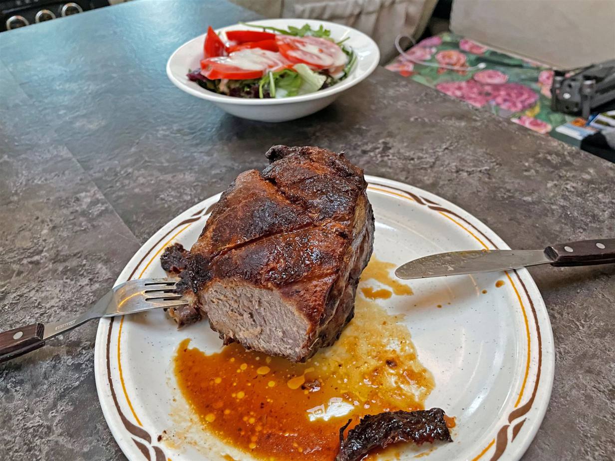 Nach eineinhalb Stunden nahm ich die 100 km unter die Räder. Die Strassen waren mit Schnee bedeckt und man musste acht geben da hin und wieder 60 Tönner voller Fahrt entgegen kamen. Ich verschwand dann kurzfristig in einer Schneewolke. Jedenfalls nahm ich es langsam, da ja nur wenige Kilometer heute fällig waren. Auf der E45 auch Inlandvegen genannt kam ich gut vorwärts. Ein Schneepflug fuhr längere Zeit vor mir. Dieser hatte aber mit 60 km eine gute Geschwindigkeit. In einer Ausweichstelle liess er mich passieren. gegen 14.00 Uhr erreichte ich Jokkmokk. Die Fahrt war durch die verschneite Landschaft herrlich anzusehen. Die Temperaturen mit - 12°C direkt warm anzufühlen. Oder habe ich mich schon an die Arctis gewöhnt ? Da ich spät dran war für auswärts Essen ging ich im COOP einkaufen. Ich habe noch einige Fertiggerichte gekauft für alle Fälle. In einem Wärmefach hatte es einen Papiersack mit warmen Essen. Bei und gibt es das auch, es ist dann meistens Poulet. Ichschaute nicht recht hin und dachte das ist ideal für heute. Ich war in fünf Minuten auf dem schönen Campingplatz in Jokkmokk. Als ich fertig eingerichtet war habe ich sofort das Essen bereit gemacht. Als ich den Sack leerte kam die grosse Überraschung. Es war kein Huhn, nein es kam ein riesen Stück Fleisch heraus. Man gönnt sich ja sonst nichts. Aber das war dann doch zuviel für ein Essen. Ich denke es reicht gut für drei Tage.