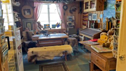 Mein erstes Ziel war ein ganz spezielles Geschäft mit allerlei Gegenständen und Lappländischen Spezialitäten die Frau Thunborg eine Deutsche Auswanderin verkauft. Der Laden liegt in Porjus (N66°57'30.0" und E19°48'51.5") und ist völlig unscheinbar. Ich habe sicher eine halbe Stunde mit der Besitzerin gesprochen. Sie ist vor 30 Jahren wegen der Liebe ausgewandert. Ihr Ziel wäre Norwegen gewesen. Aber sie blieb im kleinen Ort hängen. Leider ist ihr Mann vor 15 Jahren gestorben. Nun führt sie den Laden selbst weiter. Sie musste nach seinem Tod zuerst einmal entrümpeln. Ihr Mann hatte neben den Spezialitäten auch noch Auto Ersatzteile, Motoren und vieles anders technisches Material. Unterstützt wird sie noch von ihrem Sohn, der in Jokkmokk Lehrer ist.