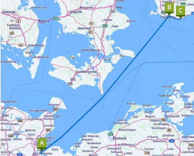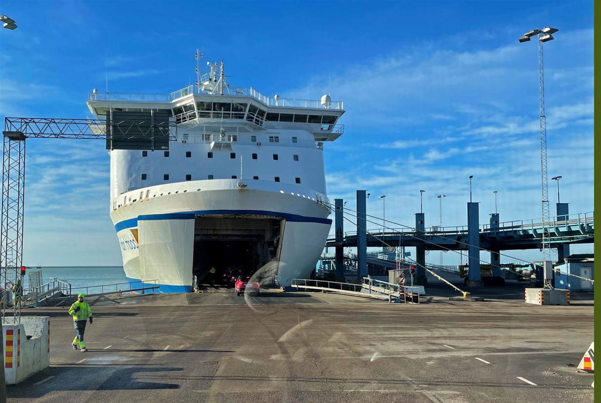 Für die letzten 30 km in Schweden bin ich um 08.00 Uhr in Malmö losgefahren. Das Schiff sollte um 09.30 Uhr Richtung Deutschland los legen. Als ich um 08.40 Uhr ankam standen schon viele LKW's, Auto und Wohnmobile bereit zum verladen. Dies dauerte und dauerte. Ich nehme an, das Schiff ist wegen des Sturmes, später angekommen. Am Ende hatten wir rund eine Stunde Verspätung. Spielte mir eigentlich keine Rolle ich hatte ja Zeit.