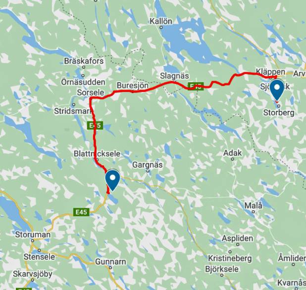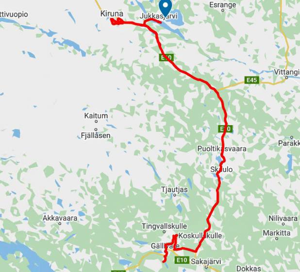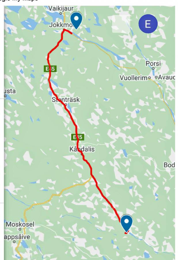 Nach vier Tagen Aufenthalt auf den schönen Stellplatz in Jokkmokk musste ich zuerst das erste mal Ent- und Versorgen. Dazu ist der Platz ideal ausgestattet. Auch im Winter kann man die Tanks an einem Bodenablass entleeren. Das stellte mich aber noch auf eine kleine Probe. Ich konnte den Verschalungsdeckel nicht öffnen, da er eingefroren war. Also Hammer raus ein zwei Schläge und schon geht es. In einem anderen Gebäude war ein langer Wasserschlauch montiert, den man auch bei Frost brauchen konnte. gegen 10.00 Uhr konnte ich dann los fahren. Die Strassen sind Schneebedeckt aber gut befahrbar haben keine grossen Steigungen und Gefälle. Die frischverschneite Landschaft und der wenige Verkehr erlaubte die Fahrt zu geniessen.