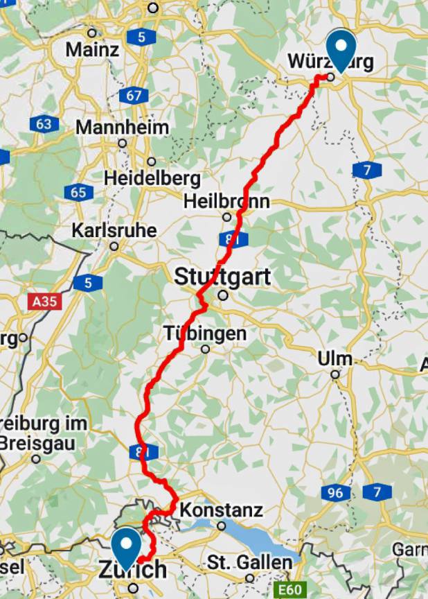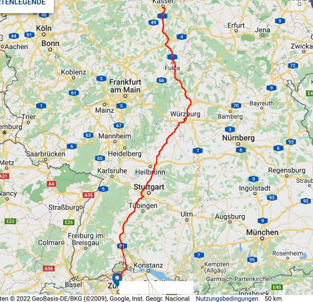 Endlich war es soweit. Ich startete von Glattbrugg aus um c1. 09.30 Uhr. Das Wohnmobil war bereits gepackt. Ich hatte die ganze Woche immer wieder Material von zu Hause mitgenommen, sodass ich am Sonntag nach dem Wasser tanken fertig war für die Abfahrt. So konnte ich heute nur hineinsetzen und los ging es. Es hatte erstaunlich wenig Verkehr auf der Strasse. Entweder sind alle Deutschen in K