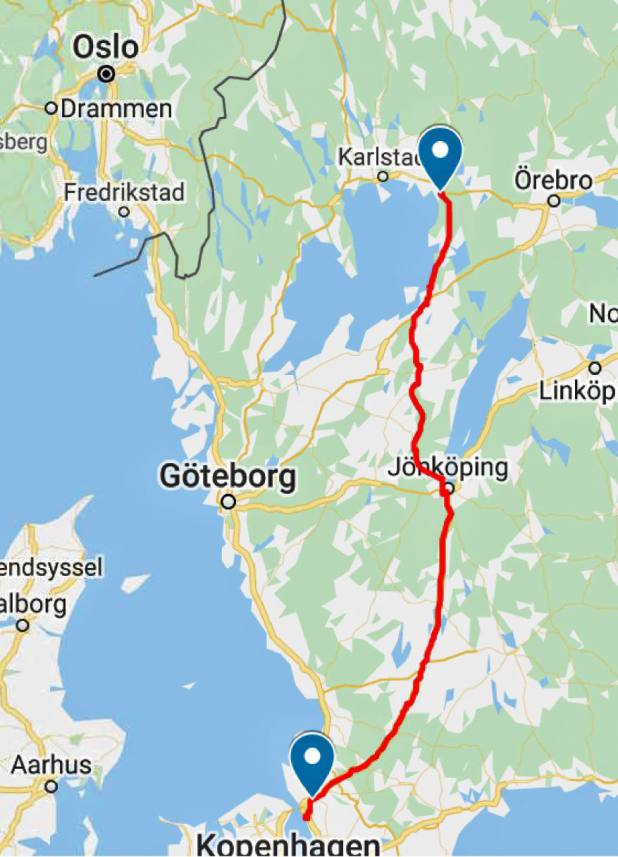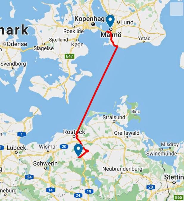 Um 19.00 Uhr war ich in Trelleborg. Da ich direkt vor dem Tor stand war ich schnell aus der Fähre. Es ging kreuz und quer durch den grossen Hafen. Irgendwann war ich dann endlich raus, ohne eine Kontrolle !! Ganz in der Nähe gibt es einen grossen schönen Stellplatz. Den steuerte ich an. Von Rostock her ist noch ein weiteres Wohnmobil zugestiegen. Wir fuhren beide an den gleichen Ort. Aber der Platz war unerklärlicherweise geschlossen. Es ist ein reiner Stellplatz kein Campingplatz. Verduzt standen wir vor der geschlossenen Türe. ich wusste von meiner letzten Reise einen Platz zum übernachten. Den steuerte ich an. Rund 12 km auf meinem geplanten Weg.
