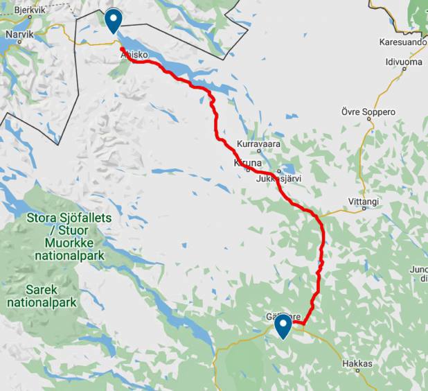 Noch etwas zum Abtransport der Pellets. Täglich verlassen 20 Züge das Erzbergwerk in Kiruna Richtung Norden. Jeder Zug hat 70 Wagen mit je 800 Tonnen Ladung und ist fast einen Kilometer lang, und wiegt 8600 Tonnen. Die Bahn zum eisfreien Hafen Narvik war die wichtigste Voraussetzung dafür, dass LKAB Anfang des 20. Jahrhunderts überhaupt beginnen konnte, das Erz in Kiruna abzubauen. Ein Produkt aus einem so abgelegenen Ort wäre sonst nicht wirtschaftlich gewesen. Im selben Takt, in dem der Erzabbau immer effektiver wurde, musste auch der Abtransport verstärkt werden. Die Lokomotiven, die dort heute fahren (IORE), gelten als die stärksten Elektroloks der Welt. Nirgendwo sonst in Schweden ist auf dem Gleis eine Achslast von 30 Tonnen zugelassen.