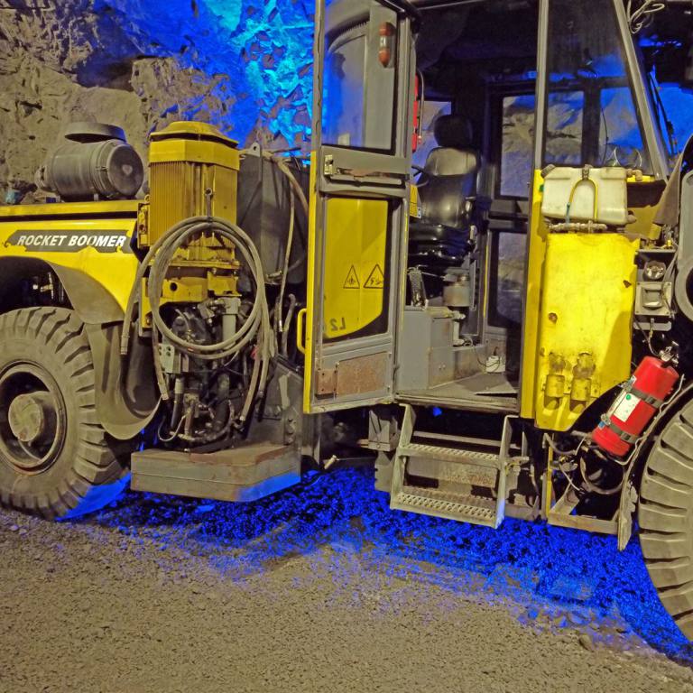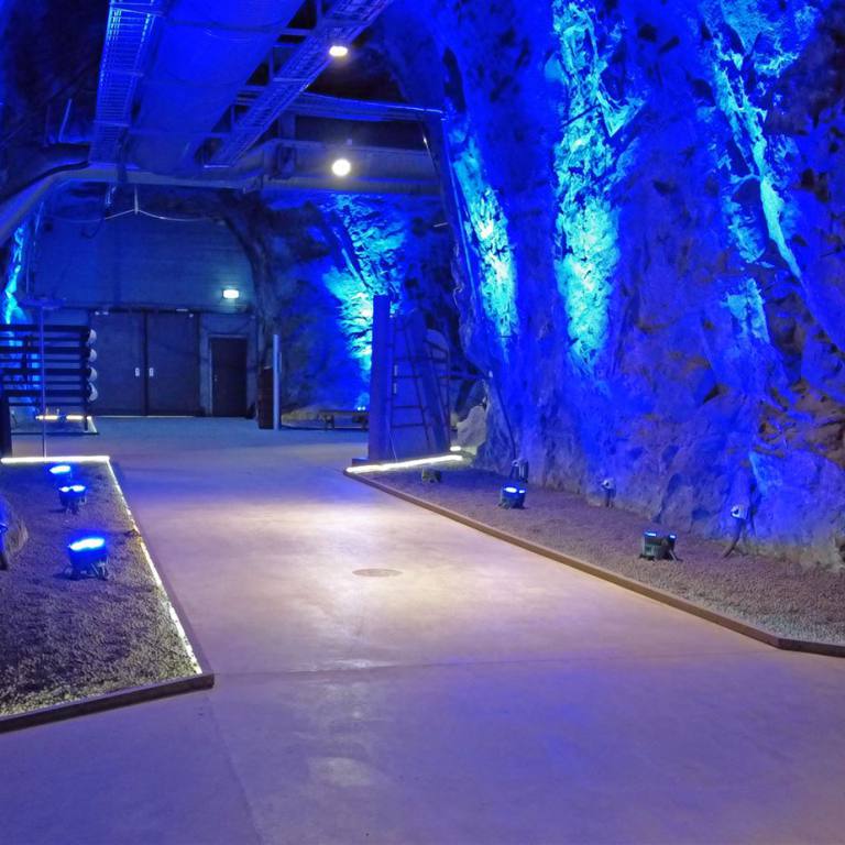 Gegen Mittag erreichte ich bereits die Erz Stadt. Ich parkte bei der Sporthalle wo es einen grossen Parkplatz gibt. Zuerst gab es Mittagessen. Ich machte mir selber etwas. Um 14.00 Uhr hatte ich mich für die Tour ins Erzbergwerk angemeldet. Ich konnte von meinen Parkplatz in wenigen Minuten zum Touristbüro fahren von wo aus der Bus uns abholte. Ich war erstaunt waren doch rund 60 Personen bereit zum einsteigen. Pünktlich ging es los. Nach 15 Minuten tauchten wir in den Berg ein auf einer breiten unbeleuchteten Strasse. Rund 15 Min ging es bergab auf - 500 m. Die Bergspitze trägt die Bezeichnung 0 m, der Schachtkopf der Aufzuganlage befindet sich auf dem Niveau −142 m, der Eingang zur Grube auf dem Niveau −230 m. Mit den Jahren wurde der Abstand zwischen den Hauptsohlen immer größer. Die Hauptsohlen des Bergwerks befinden sich bei −275 m, −320 m, −420 m, −540 m, −775 m, −1045 m und −1365.