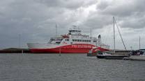 Als wir warteten lief um 12.30 Uhr bereits die grosse Fähre Norröna ein. Sie ist 165 m lang, kann 1482 Passagiere mitnehmen und rund 1000 Fahrzeuge. Zügig wurde mit dem Ausladen begonnen. Bevor alle Fahrzeuge ausgeladen waren konnten wir bereits in den Schiffsbauch einfahren. Wir mussten noch kurz warten bis die Zimmer fertig gereinigt waren. Dann bezogen wir unsere Kabine. Sie ist im Gegensatz zu den Finnlandfähren sehr klein. An den Handtüchern wurde auch gespart. Wir bekamen nur je ein Badetuch aber keine Handtücher.