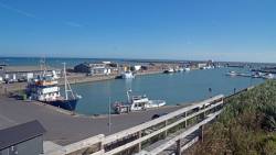 Wir benutzten die Zeit mit Lesen. Gegen Mittag wurde es immer Heller und die Sonne schien zwischen den Wolken durch. Ich hatte eine Idee, die wir sofort umsetzten. Mit dem Wohnmobil fuhren wir zum Hafen. Dort haben wir ein Fischrestaurant gesehen. Leider war es gestern schon geschlossen. Wir bestellten Fisch und wurden nicht enttäuscht. Die Idee mit dem Fahrzeug zu fahren war eine geniale. Während wir genüsslich speisten kam Regen auf und starker Wind. Wir kauften noch einige Lebensmittel und neben dem Einkaufsgeschäft fand ich noch feste neue Schuhe. Nun hatte ich eigentlich alles erledigt, was ich noch vor der Ueberfahrt vor hatte. Wir fuhren anschliessend wieder zum Stellplatz und ruhten uns den Rest des Tages aus.