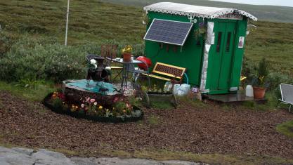 Voller Eindrücke und langsam Müde von den Besichtigungen fuhren wir zu unserem Ziel Anarstapi. Der grosse naturbelassende Campingplatz hat eine Seeschwalben Kolonie, die ihr Revier mit allen Mitteln verteidigt. Mit Sturzflügen bis nahe an den Kopf verteidigen sie ihre Nester, die auf dem Boden sind. Es ist fast schon Volksbelustigung wenn neue Camper ankommen, das Fahrzeug abstellen und beim Aussteigen angegriffen werden. Unsere Gruppe ist nun auf einer 4 km langen Wanderung mit Regenschirm als Verteidigung. Vor der Wanderung hat mein Starkoch noch das Abendessen gemacht. Er hat immer gute Ideen und zaubert etwas gutes auf den Teller. Heute war es ein Hamburger mit Salat.