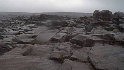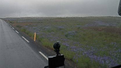 Es ging weiter über eine Hochebene. Die Vegetation änderte von Minute zu Minute. Von Steppe über Vulkansand, alles in Schwarz bis zum Kontrastprogramm mit schönen blauen Lupinen konnte man alles erwarten. Leider war das Wetter grausig. Regen und straker Wind erschwerten die Fahrt.