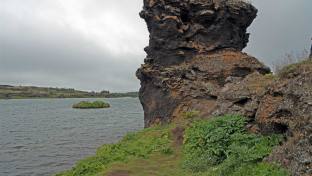 Da wir noch zu früh dran waren machten wir noch einen kleinen Ausflug zum Myvatn See. Nicht weit weg von der Strasse gibt es einen kurzen Weg direkt am See zu bewandern. Es gibt lustige Lavasteine und eine schöne Wiese mit Blumen.