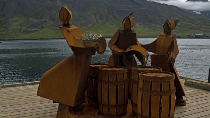 Neben der Arbeit zeigten die Frauen auch wie gefeiert wurde. Sie tanzten mit den Touristen und sangen Isländische Lieder. Es wurde gezeigt wie die Fische ausgenommen, gesalzen und dann ich Holztonnen gelagert wurden. Die Fischabfälle wurden dann den Möwen verfüttert, die schon lange auf den Dächern warteten. Ein Gekreische und ein Streit untereinander begleitete die Fressorgie.
