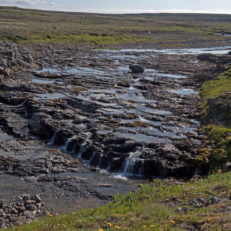 Nur wenige Kilometer weiter ist ein weiterer Wasserfall. Er im poniert nicht durch seine Fallhöhe, sondern durch die Landschaft. Der Glanni ist einer der Wasserfälle im 62 km langen isländischen Fluss Norðurá welcher einer der bedeutendsten Lachsflüsse Islands ist. Seine Fallhöhe beträgt 8 m. Vom Parkplatz sind es nur wenige Meter über einen gekiesten schönen Weg durch Sträucher gesäumt.