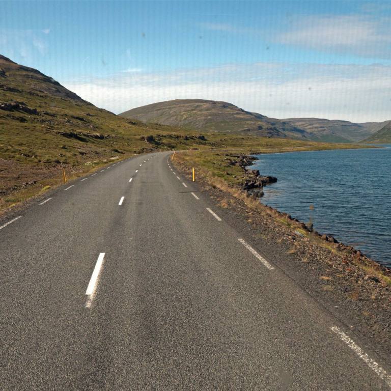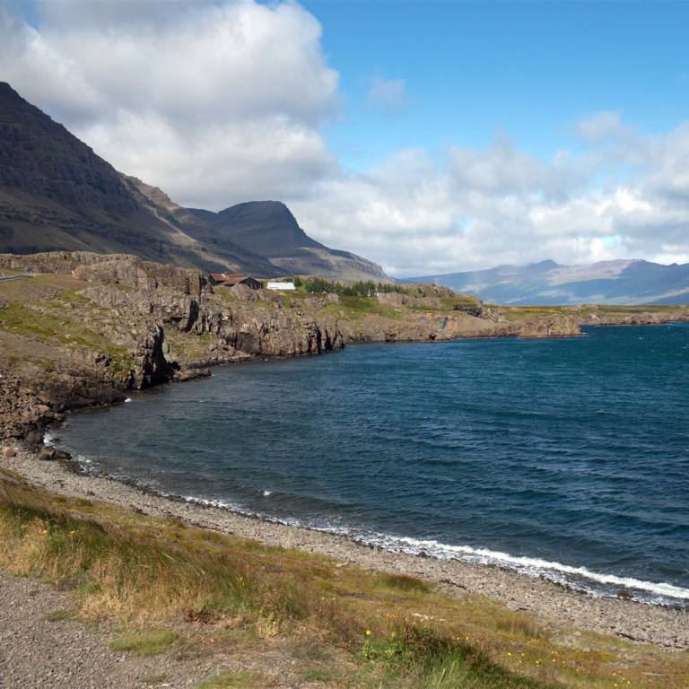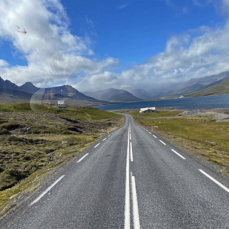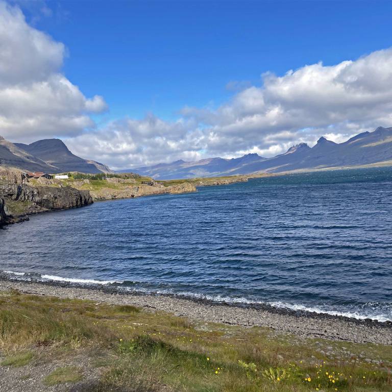 Unsere letzte Etappe in Island konnten wir bei schönstem Wetter fahren. Die Fahrt dem Meer entlang war einmalig. Bei diesem klaren Wetter leuchtete das Meer tiefblau. Die Berge an der linken Seite wechselten Farbe und Formationen im Minutentakt. Die Strecke war lang aber abwechslungsreich. Wir hatten unterwegs nichts besonderes zum Stoppen und anschauen. So nahmen wir es gemütlich wurden aber im laufe des Morgens von heftigen Windböen gebeutelt. Ich musste meine 30 m2 Seitenfläche verteidigen um nicht ab einer Brücke zu fliegen. Wir haben gestern Abend noch erfahren, dass die Fähre nicht wie vorgesehen am Donnerstagmorgen fahren wird. Sie musste gestern zwischen Bergen und Hirtshals stoppen und warten bis der Sturm vorbei war. Sie ist nach Stand heute wieder in Hirtshals ausgelaufen und wird am Freitag uns abholen.
