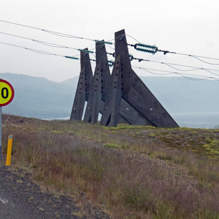 Das Gebirge das wir von Fjord zu Fjord überqueren mussten war meistens Abenteuerlich. So ging es zuerst steil bergauf bis hoch über den Fjord. Dann mit 15% Gefälle wieder runter zum nächsten Fjord. Das war schon anspruchsvoll den Weg zu halten und die Löcher auf der Strasse zu umfahren. Aber auch das haben wir gemeistert. Kurz vor unserem Ziel sahen wir noch etwas das wir nicht kennen. Das Bild zuletzt ist ein Strommast. Am frühen Nachmittag sind wir auf dem schönen Campingplatz, wiederum am Ende der Welt angekommen.
