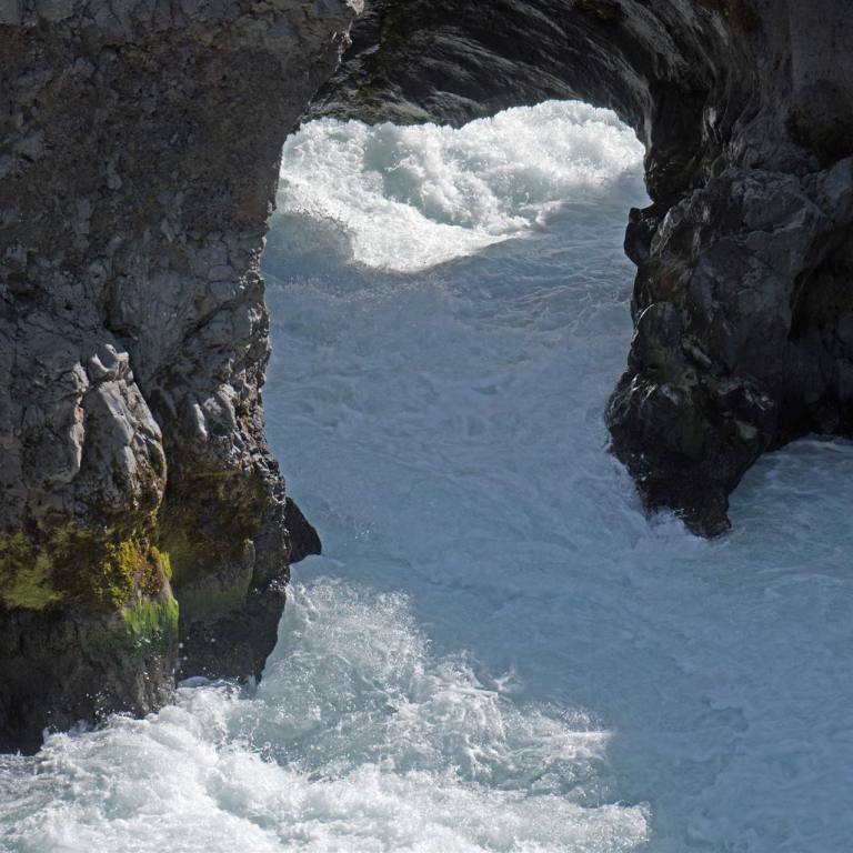 Nach dem interessanten Besuch fuhren wir weiter zu einem weiteren Wasserfall. Auf dem Weg vom Golden Circle in Richtung Osten passieren wir kurz nach der Einmündung von der Straße 30 auf die Ringstraße den Fluss Þjórsá. Kurz vor der Brücke führt rechts die kleine, schlaglochreiche Schotterstraße Urriðafossvegur nach wenigen hundert Metern zum Parkplatz beim Urriðafoss. Man ist direkt beim Fluss, der tosend einen Fall herunter fliesst.