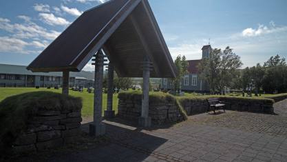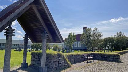 Wir konnten uns kaum trennen von der unsäglichen Schönheit des Falles. Es ging nun aber nur wenige Kilometer weiter nach Reykholt. Der Ort liegt im Tal des Flusses Reykjadalsá, dem Reykholtsdalur. Das Vorkommen des Wortes reykur (Rauch) im Namen weist auf die zahlreichen heißen Quellen in der Umgebung hin. Reykholt ist die Heimat des Schriftstellers, Dichters und Gelehrten Snorri Sturluson aus dem 13. Jahrhundert. Während seiner Zeit war Reykholt das intellektuelle Zentrum Islands und der Standort der wichtigsten Schulen des Landes. Man kann hier die Überreste von Snorris altem Wohnsitz besichtigen, einschließlich eines Tunnels, der zwischen dem Haus und dem Pool verlief. Dieser geothermisch beheizte Pool, Snorralaug, ist eines der wenigen Dinge, die aus dem Mittelalter Islands erhalten geblieben sind. Das nahe gelegene Snorrastofa ist ein Kulturzentrum und Institut für mittelalterliche Forschung, das Snorri gewidmet ist.