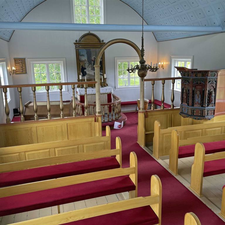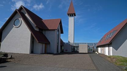 Neben den Wohngebäuden steht noch eine kleine schöne Kirche. Die Kirche Laufáskirkja wurde 1865 von dem aus Laufás stammenden Schreiner und Zimmermann Tryggvi Gunnarsson (1835–1917) und Zimmermann Jóhann Bessason (1839–1912) erbaut und hat eine Kanzel mit der Jahreszahl 1698, und am östlichen Giebel der Kirche erhebt sich eine der höchsten Ebereschen Islands von 1855.[Die Kirche hat eine Grundfläche von 62 m² und verfügt über 110 Sitzplätze.[Sie hat eine Länge von 10,19 m und eine Breite von 6,15 m, und seit 1990 steht sie unter Denkmalschutz.