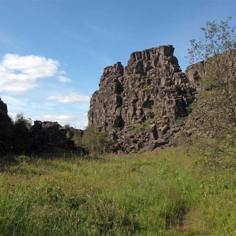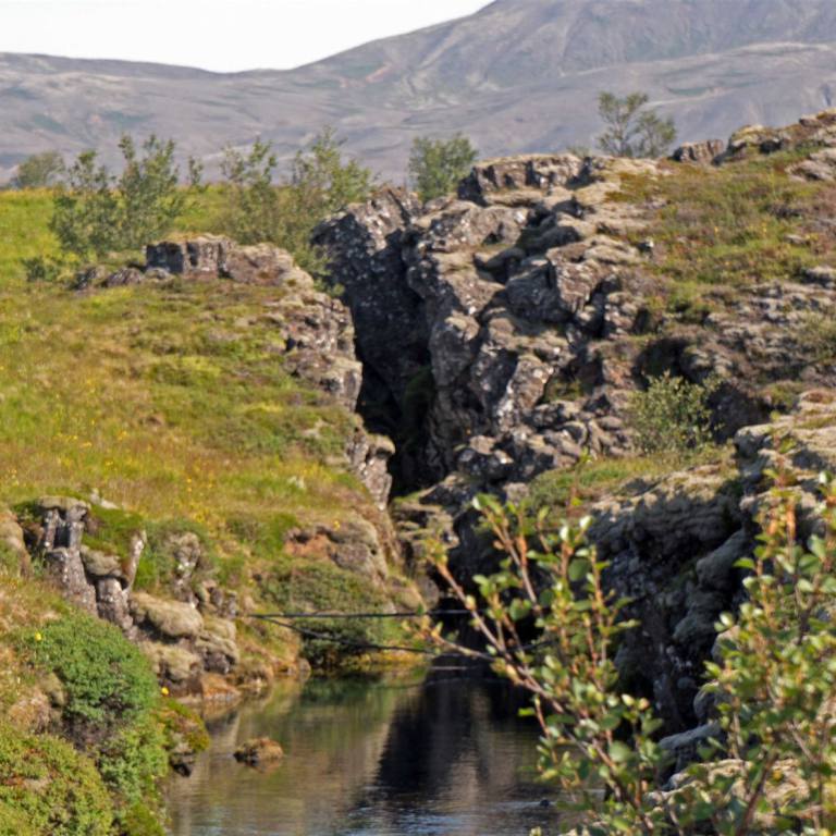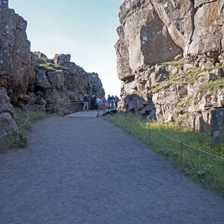 Unser Übernachtungsplatz war ein Ort Islands von grosser nationaler und geologischer Bedeutung. Die altisländische Volksversammlung wurde hier im Jahr 930 abgehalten. Es gilt als eines der ältesten Parlamente der Welt. Nahe an unserem Campingplatz war da Visitor Center des Nationalparks. Wir benutzten die Gelegenheit zu einem Besuch. Der geologische Prozess, der das Land im Þingvellir-Nationalpark formte, ist in jeder Hinsicht ebenso bemerkenswert wie die großen historischen Ereignisse, die sich hier zutrugen. Seit 2004 ist Þingvellir aufgrund seiner geologischen Einmaligkeit und historischen Bedeutung Teil der UNESCO Welterbeliste und die isländische Nation ist sehr stolz auf dieser unglaublichen Ort. Die eurasischen und nordamerikanischen tektonischen Platten treffen sich in Þingvellir. Sie bewegten sich für lange Zeit auseinander und kreierten das dramatische und zerklüftete Schluchtental, das durch das Areal verläuft. Þingvellir ist eine der außergewöhnlichsten geologischen Stätten in Island, fast schon der Welt. Der Grund dafür ist, dass Sie in Þingvellir sehr deutlich sehen können, wie die zwei Kontinentalplatten voneinander entfernen. Island ist einer der wenigen Orte, an denen Sie diesen Prozess auf trockenem Land sehen können, aber mit Sicherheit einer der beeindruckendsten Orte! Die Platten verschieben sich im Jahr um zwei Zentimeter.