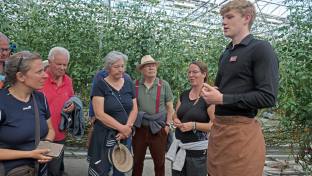 Unser heutiges Programm lies uns viel Spielraum zumal auch die Kilometer sich in Grenzen hielten. Unterwegs hatten wir um 11.00 Uhr einen Termin. Nach knapp 30 km besuchten wir ein Treibhaus einer Familie die Tomaten anbauten. Friðheimar ist ein Familienunternehmen, Das Ehepaar hat 5 Kinder, die alle eine aktive Rolle im Familienunternehmen spielen. Der Betrieb erinnert an den Junker Hof in der Schweiz. Wir besuchten den Tomatenanbau. Dort wird in hellerleuchteten Gewächshäusern ganzjährig Tomaten angepflanzt. Auch während Islands dunkler Winter. Die Energie wird 200 m vom Hof entfernt aus der Erde gepumpt und zur Heizung der Treibhäuser gebraucht. Es braucht ebenfalls sehr viel Licht, das alles aus sauberem Strom hergestellt wird. Die Bestäubung übernehmen Bienen, die von Holland kommen. Nur Dank den vielen Vorzügen stellt die Familie 30 % der Isländischen Tomaten her. Wir haben eine Einführung vom Sohn des Besitzers bekommen und anschliessend eine feine Tomatensuppe.