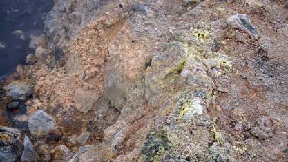 Um 15.30 Uhr nahmen wir den Rückweg unter die Räder. Wir mussten nochmals 1 Stunde Schotterpiste und Kamikaze Fahrer ertragen. Wir machten unterwegs einen kurzen Stopp um noch Fotoaufnahmen zu machen. Die bemerkenswerteste Attraktion hier ist die einzigartige Landschaft selbst. Die Berge sind aus Rhyolith und andere geologische Elemente - wie Schwefel, Eisen und das Moos - färben die Hänge in vielfältige Töne aus Braun, Gelb, Rosa, Rot und Blau.
