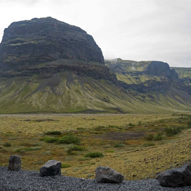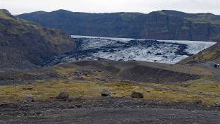 Die Fahrt führte heute weiter dem Meer entlang. Nur gerade 6 km lang war die erste Fahrt. Wir sind an der Gletscherzunge des Solheimajökull. Er ist unfassbar reich an dramatischen Eisformationen inklusive Schluchten, zerklüfteten Spitzen und Senken. Sólheimajökull ist eine Gletscherzunge oder ein Ausläufer des Mýrdalsjökull-Gletschers, dem viertgrößten Gletscher in Island, unter dem der mächtige und gefürchtete Katla Vulkan ominös unter der Eisdecke lauert. Man kann auf einem gut ausgebauten Weg bis zum Schnee laufen. Die Aussicht ist sehr schön. Leider ist dieser Gletscher wie andere auch in 10 Jahren um 1.0 km zurückgegangen.