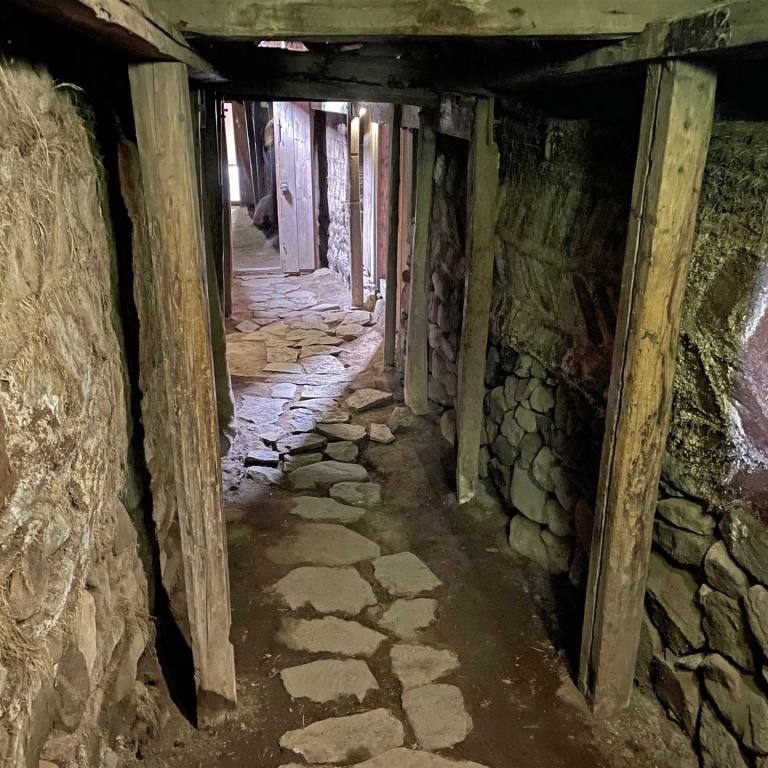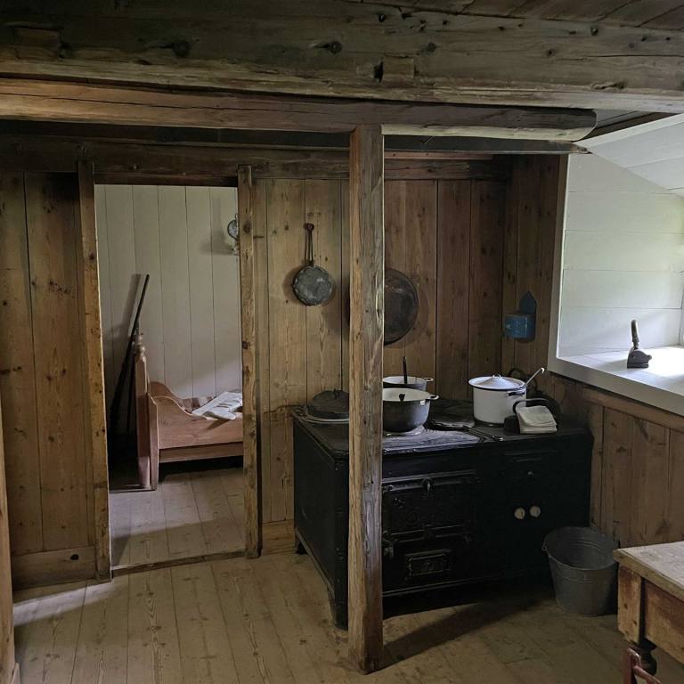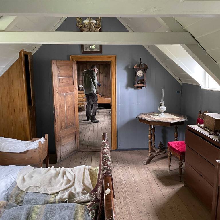 Im Innern der Häuser sieht man realistisch wie die Bewohner früher gelebt haben. Die Innenräume des Museums sind eingerichtet, als wären sie heute noch bewohnt. Viele der hier ausgestellten Dinge des täglichen Lebens wie Geschirr, Möbel, Geräte oder Werkzeug, stammen aus dem 19. Jahrhundert. Neben zwei wunderschön ausgestatteten Gästezimmern können auch die Baðstofa, eine Kombination aus Wohn-, Schlaf- und Arbeitsraum, oder die Küche besichtigt werden. Der Webraum oder die erst vor kurzem restaurierte alte Schmiede vermitteln ebenfalls einen interessanten und anschaulichen Einblick in die Lebensweise der Hofbewohner. Eine Besonderheit stellt das Brautzimmer dar, in welchem sich die Bräute auf ihre Hochzeit vorbereiteten, um sich anschließend in den traditionellen Brautkleidern den Hochzeitsgästen zu präsentieren.