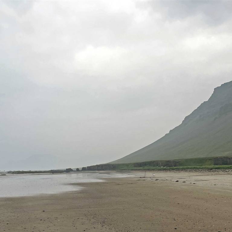 Angenehme Temperaturen und Windstill als wir aufstanden freute uns. Der Wind macht gefühlte Temperatur immer einiges tiefer. Wir fuhren um halb zehn los. Wir verlassen nun die Westfjorde und haben als erstes Ziel Ytri Tunga eingegeben. Hier sollen Robben hausen. Wir waren gespannt. Die Falschinterpretation des Navis führte uns aber an den falschen Strand. Das war aber nicht so schlimm. Die Vegetation mit den schwarzen Lavasteinen und dem Meer gab wunderschöne Kontraste.