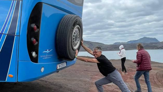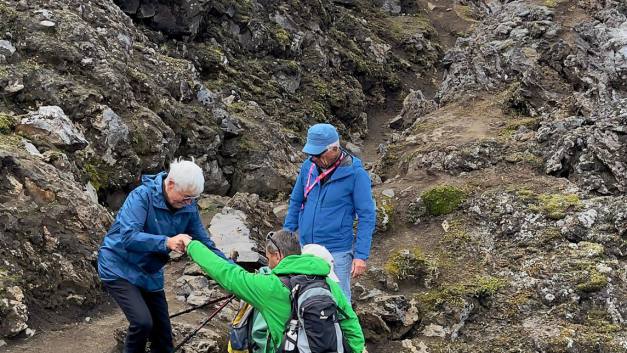 Während unserer Reise brach der Vulkan Litl-Hrutur aus. Das war ein internationales Ereignis. Es kommen Heerscharen von Touristen um das Schauspiel zu sehen. Wir mittendrin. In den letzten Tagen waren wir nie weit weg vom Vulkan. Gestern waren es nur 9 km. Einige unserer Teilnehmer liess es sich nicht nehmen den beschwerlichen Aufstieg zum Lavafeld unter die Füsse zu nehmen. Hin- und Zurück waren es gegen 30 km. Die Polizei ist überall präsent um die Sicherheit der kopflosen Touristen zu gewährleisten. Der Litli-Hrutur ist ein kleiner Berg und der Ort des aktuellen Vulkanausbruchs 2023 Er ist Teil des nahegelegenen Vulkangebietes Fagradalsfjall, das im März 2021 und im August 2022 ausgebrochen ist. Er befindet sich auf der Halbinsel Reykjanes, in der Nähe der Stadt Grindavik und des internationalen Flughafens Keflavik.Der Berg ist 312 m hoch. Am10. Juli 2023 wurde er zum Schauplatz des dritten Ausbruchs in einer Reihe von vulkanischen Aktivitäten in der Umgebung. Einige haben auch einen Rundflug gebucht.