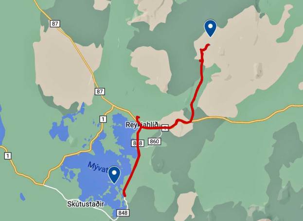 Unsere letzte Etappe war Dimmuborgir. Bei Dimmuborgir handelt es sich um ein Lavafeld und die Überreste eines Lavasees östlich des Sees Mývatn in Island. Es befindet sich in einer vulkanisch aktiven Region auf dem Gebiet des Vulkansystems Krafla, direkt östlich des Sees. Es gibt verschiedene Routen in diversen Längen wo man schön durch die Felder spazieren kann. Dabei kann man sehr bizarre Felsformationen sehen. Sie wurden weder von Wind noch Wasser geschliffen, sondern entstanden durch Eruptionen von Kratern in der Nähe. Viele dieser Felsgebilde haben spezielle Namen, die durch die Fantasie der Isländer entstanden sind, weil sie mit ihrer Form an verschiedene Lebewesen oder Dinge erinnern. Wir spazierten de 2.2 km lange rote Strecke entlang.
