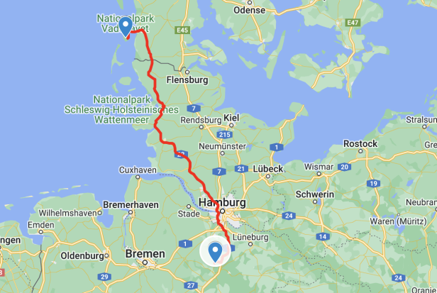 Von Heber aus waren wir wieder schnell auf der Autobahn. Ohne grossen Verkehr ging es Richtung Hamburg. Gemäss Verkehrsfunk sollte es vor dem Elbtunnel 6 km stockender Verkehr haben. Es wird immer noch am Ausbau der Strasse in Hamburg gebaut. So staut sich der Verkehr was wir hinnehmen mussten. Es war dann aber nicht so schlimm. Stockend aber Fliessend konnten wir das Nadelöhr passieren mit wenig Zeitverlust. Nach dem Tunnel bogen wir dann Richtung Husum ab. Es wurde immer schwarzer am Himmel und dann war ich froh, dass meine Scheibe gereinigt wurde. Es goss aus allen Kübeln rund eine Viertel Stunde. Dann war der Spuck vorbei. Die Sonne kam wieder aber es herrschte ein lästiger Seitenwind der vor allem böig war. Fest am Lenkrad halten dann ging es recht gut. Der Aufprall auf meine 28 m2 Seitenfläche schüttelte uns durch. Es waren nicht so viel Kilometer wie gestern, der Weg zog sich aber dahin, da wir am Schluss keine Autobahn mehr hatten. Bei Tonder überquerten wir die Dänische Grenze. Gegen halb Vier Uhr waren wir dann auf dem schönen Stellplatz auf der Insel Romö. Es sind eigentlich drei, die im Kreis um einen Teich angelegt sind. Nach einem kleinen Imbiss im Wohnmobil spazierten wir noch zum Hafen. Hin und Zurück waren es rund 5 km.