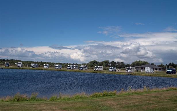 In der Nacht hat es ein wenig geregnet. Bei der Abfahrt war es aber wieder trocken. Die Strassen waren aber Nass und die Löcher mit Wasser gefüllt. Zuerst mussten wir die Naturstrasse wieder zurück fahren. Dann hatten wir aber wieder Asphalt. Unterwegs gab es keine Sehenswürdigkeiten. Der Weg war eigentlich die Sehenswürdigkeit. Bedingt durch den Regen und den Dunst sah man die ganze Schönheit aber nicht. Wir haben vom ausgebrochenen Vulkan anscheinend die Aschenwolken, was das Wetter so gestaltet. Normalerweise hätten wir schönes Wetter. Das soll sich aber Morgen wieder ändern. Der Wind dreht. In der zweiten Streckenhälfte kamen wir nochmals in den Genuss von Schotterstrassen. Mehr als 30 km pro Stunde war nicht drin. Es klapperte und schepperte im Wohnmobil. Die Landschaft war aber trotzdem sehr schön.