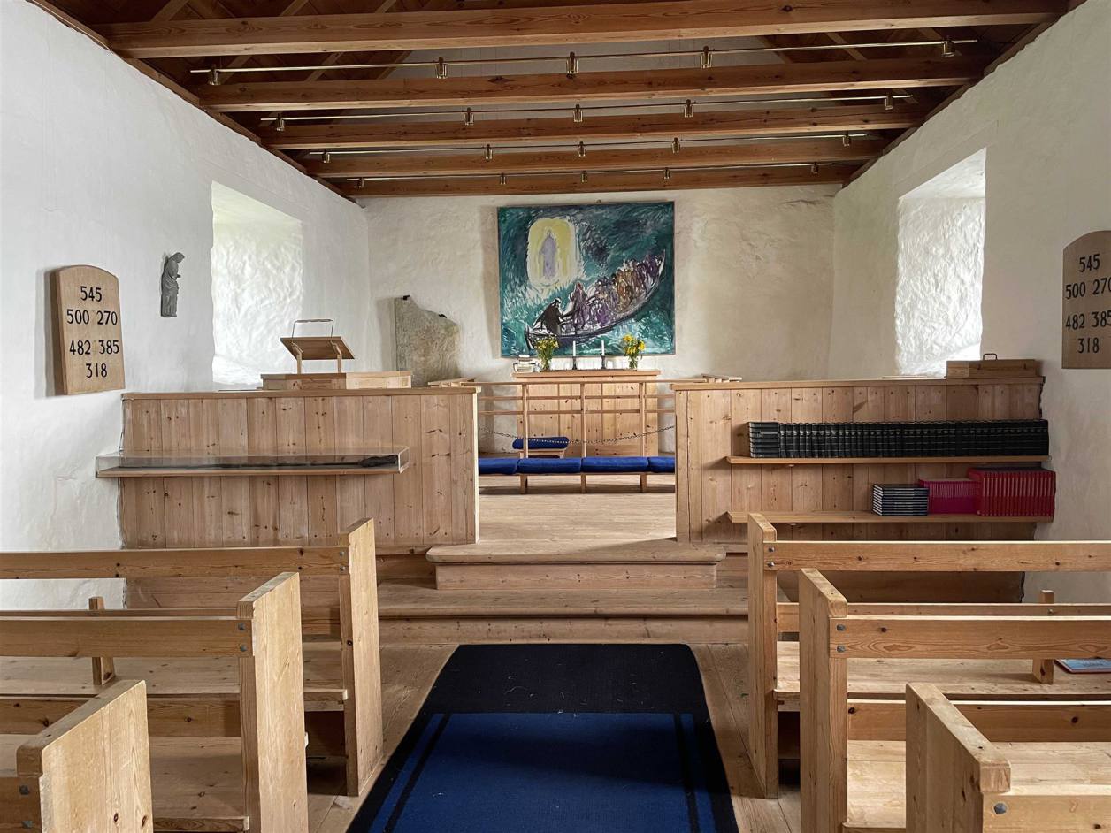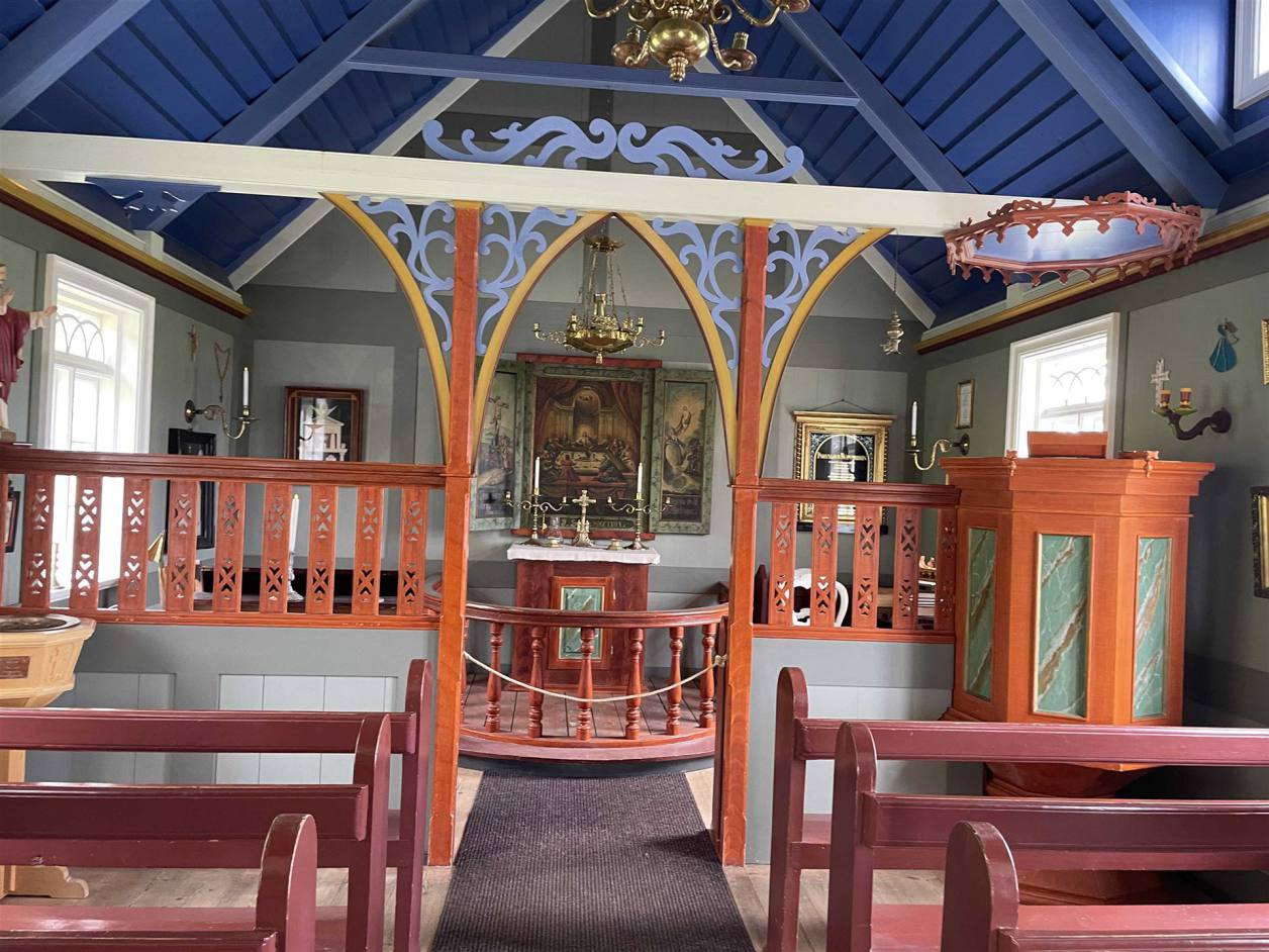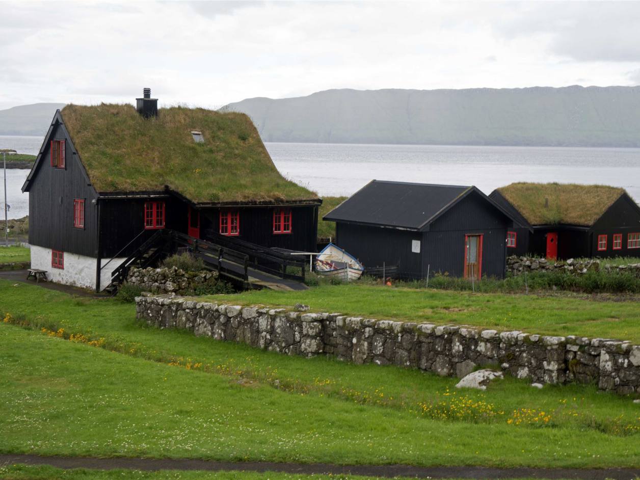 Der Morgen versprach nicht das was einem Freuen konnte. Es war grau und regnete. Unsere erste Fahrt auf den Färöern stand unter keinem guten Stern. Wir fuhren als letzte los. Die Strecke mit 150 km nach Fuglafjördur war nicht lang. Wir konnten zwei Stichstrassen nicht befahren, da die Strassen eng sind und wenig Ausweichmöglichkeiten bestanden. Bei dem schlechten Wetter war das keine Strafe. Die Aussicht war mässig. So hatten wir nur rund 120 km heute zu befahren. Zuerst ging es Richtung Eysturoy, nach weiteren 2 km gibt es an der Hauptstrasse in eine wunderschöne kleine schwarze Holzkirche. Diese war bei unserem Besuch geschlossen. Von Aussen ist sie aber sehr schön mit dem Grass Dach.