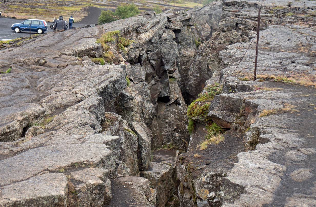 Unser Übernachtungsplatz war ein Ort Islands von grosser nationaler und geologischer Bedeutung. Die altisländische Volksversammlung wurde hier im Jahr 930 abgehalten. Es gilt als eines der ältesten Parlamente der Welt. Nahe an unserem Campingplatz war da Visitor Center des Nationalparks. Wir benutzten die Gelegenheit zu einem Besuch. Der geologische Prozess, der das Land im Þingvellir-Nationalpark formte, ist in jeder Hinsicht ebenso bemerkenswert wie die großen historischen Ereignisse, die sich hier zutrugen. Seit 2004 ist Þingvellir aufgrund seiner geologischen Einmaligkeit und historischen Bedeutung Teil der UNESCO Welterbeliste und die isländische Nation ist sehr stolz auf dieser unglaublichen Ort. Die eurasischen und nordamerikanischen tektonischen Platten treffen sich in Þingvellir. Sie bewegten sich für lange Zeit auseinander und kreierten das dramatische und zerklüftete Schluchtental, das durch das Areal verläuft. Þingvellir ist eine der außergewöhnlichsten geologischen Stätten in Island, fast schon der Welt. Der Grund dafür ist, dass Sie in Þingvellir sehr deutlich sehen können, wie die zwei Kontinentalplatten voneinander entfernen. Island ist einer der wenigen Orte, an denen Sie diesen Prozess auf trockenem Land sehen können, aber mit Sicherheit einer der beeindruckendsten Orte! Die Platten verschieben sich im Jahr um zwei Zentimeter.