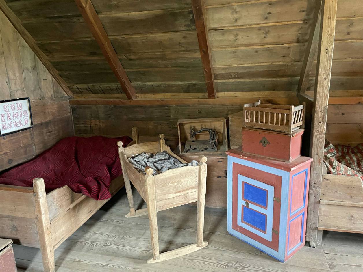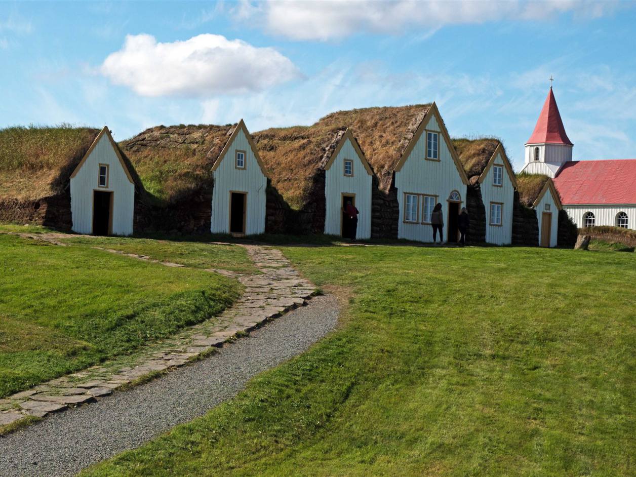 Im Innern der Häuser sieht man realistisch wie die Bewohner früher gelebt haben. Die Innenräume des Museums sind eingerichtet, als wären sie heute noch bewohnt. Viele der hier ausgestellten Dinge des täglichen Lebens wie Geschirr, Möbel, Geräte oder Werkzeug, stammen aus dem 19. Jahrhundert. Neben zwei wunderschön ausgestatteten Gästezimmern können auch die Baðstofa, eine Kombination aus Wohn-, Schlaf- und Arbeitsraum, oder die Küche besichtigt werden. Der Webraum oder die erst vor kurzem restaurierte alte Schmiede vermitteln ebenfalls einen interessanten und anschaulichen Einblick in die Lebensweise der Hofbewohner. Eine Besonderheit stellt das Brautzimmer dar, in welchem sich die Bräute auf ihre Hochzeit vorbereiteten, um sich anschließend in den traditionellen Brautkleidern den Hochzeitsgästen zu präsentieren.