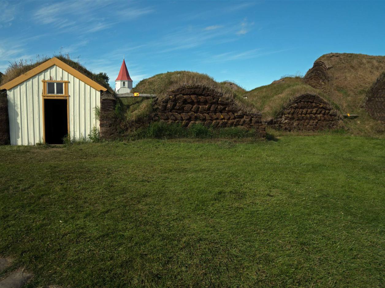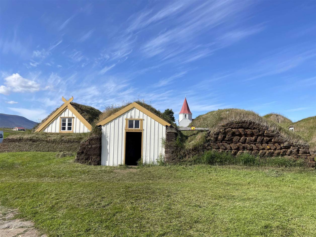 Am Morgen war es leider schon wieder bedeckt. Es war Hochnebel. Aber es regnete nicht. Der eklige Wind war aber immer noch da und machte die Temperatur gefühlt noch tiefer. Wir fuhren los mit wenigen Zwischenhalten. Es gab wenig zu besichtigen. Der erste Halt war aber schon speziell. In der Nähe von Akureyri liegt der wunderschön restaurierte Torfhof Laufás, der heute als Museum dient. Ein exzellentes Beispiel für Islands traditionelle Bauweise.