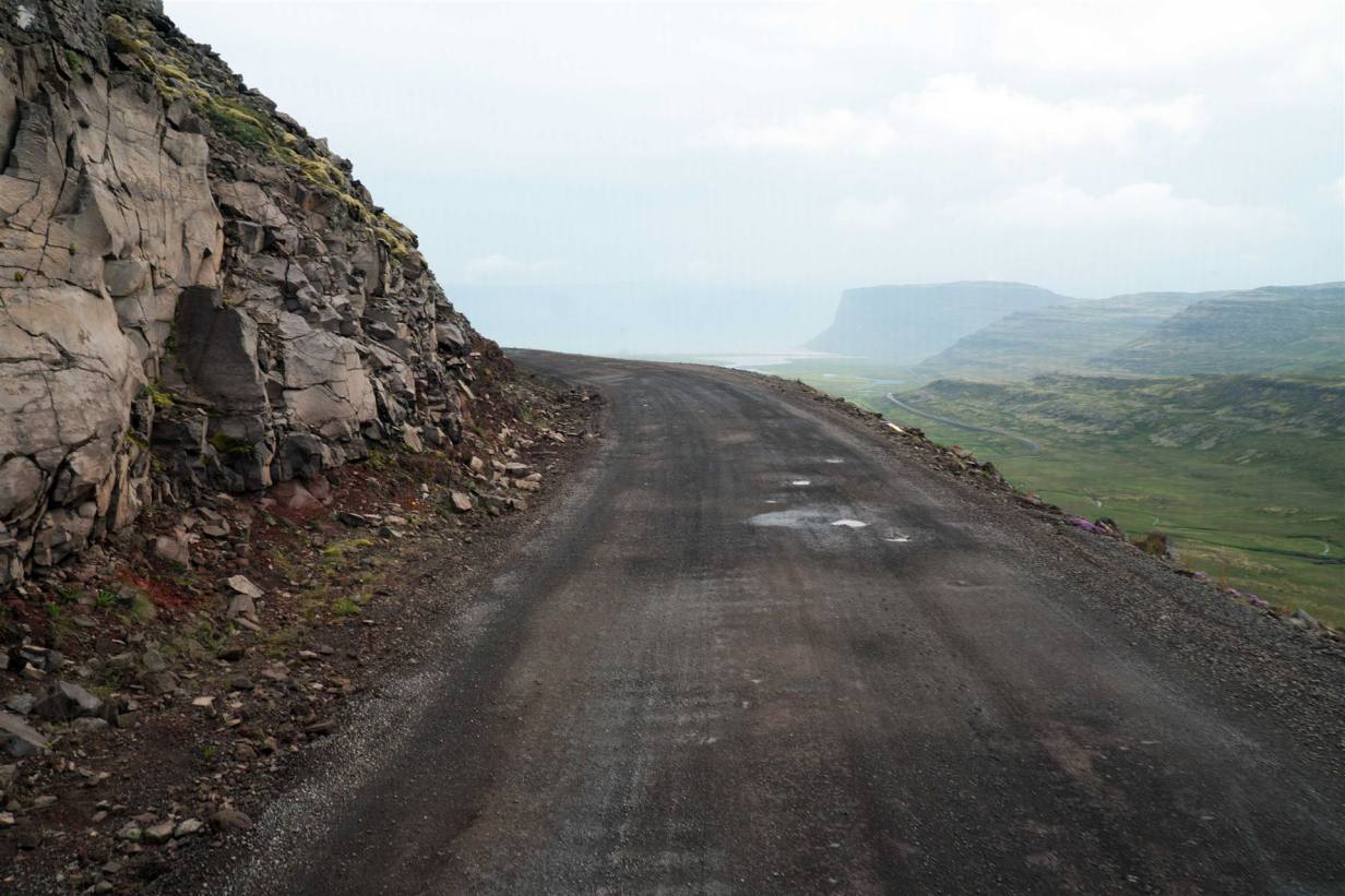 Wir kamen pünktlich auf Island an. Es war stark bewölkt regnete aber noch nicht. Wir fuhren direkt weiter an unser Ziel. Der Weg führte uns durch schöne karge Landschaften über kleine Pässe. Von oben sah man die Küstenlinie. Inzwischen hatte es zu Regnen angefangen. Der Wind peitscht uns den Regen an das Wohnmobil. Wir sind nun im fahrenden Haus und Lesen und bearbeiten Bilder. Um 18.00 Uhr haben das Briefing für Morgen und ein Fischsuppen Essen.