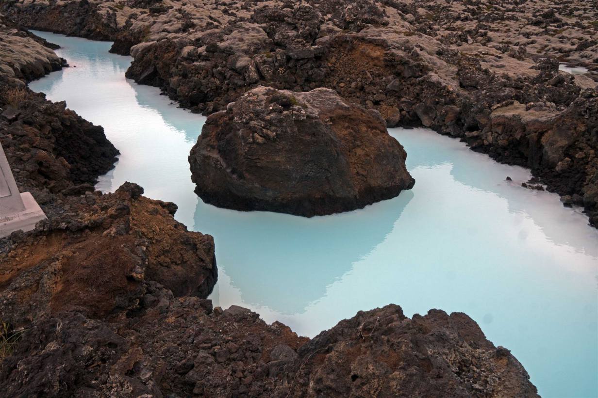 Da wir schon im Geothermal Gebiet sind, gibt es noch ein weiteres Highlight wenige Kilometer von hier entfernt. In der Nähe von Grindavik gibt es die Blaue Lagune. Ein 5.000 Quadratmeter großer, strahlend blauer See, dessen Wassertemperatur sich auch im Winter zwischen 37° und 42° Celsius bewegt. Das Lavafeld in dem die Blaue Lagune sich befindet, entstand im Jahre 1226. Der See selbst bildete sich allerdings erst viel später: Im nahegelegenen Wärmekraftwerk Svartsengi (benannt nach dem Vulkansystem, in dem es steht) wurde 1978 begonnen, 240° heißes Wasser aus rund 2.000 Metern Tiefe an die Oberfläche zu befördern, um Energie zu gewinnen. Das vollkommen reine Wasser wurde anschließend in das Illahraun abgeleitet, wo so die Blaue Lagune entstand.