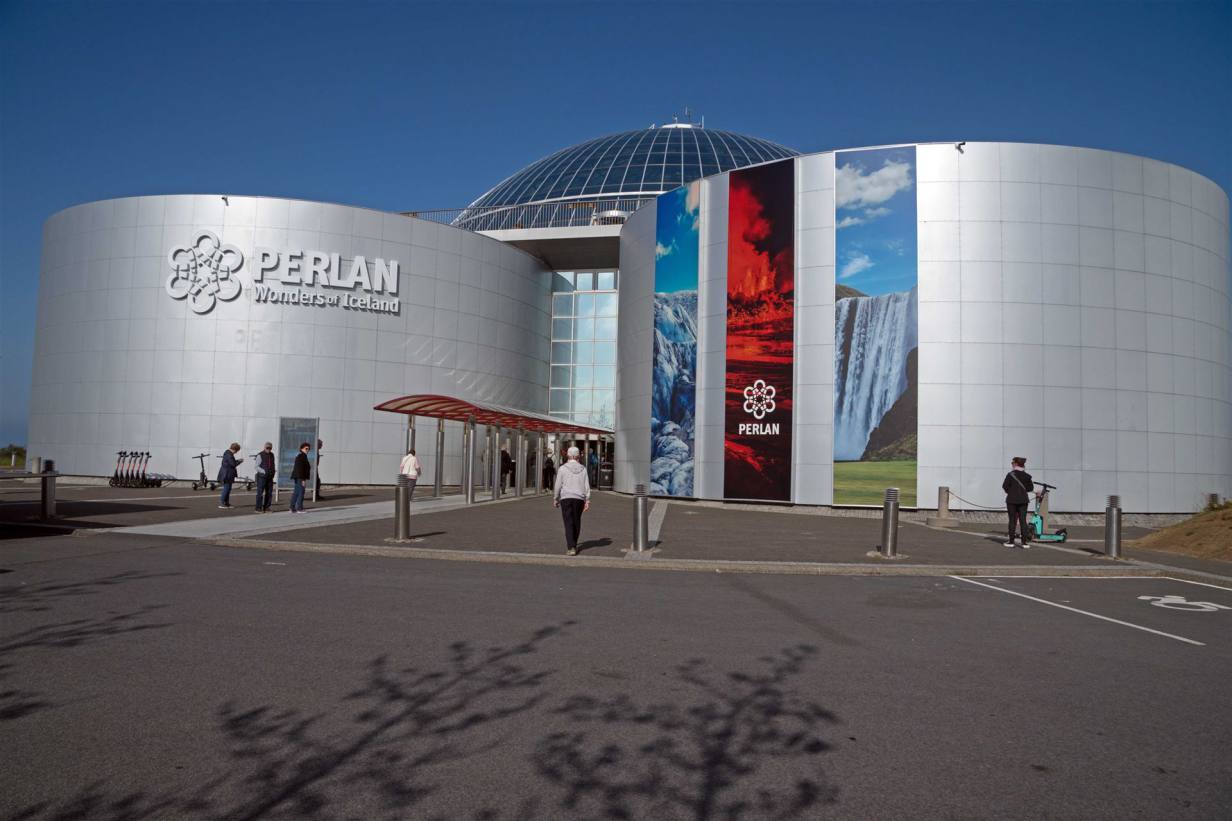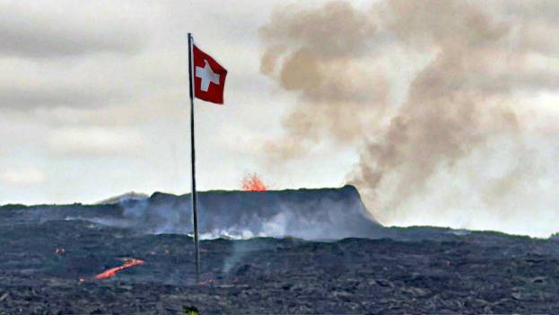 Schon am Morgen früh haben wir Glückwünsche unserer Mitreisender bekommen. Lukas der Reiseführer hat sein Auto gar mit Schweizerfähnchen ausgerüstet. Sogar der Vulkan sprühte noch stärker für die Schweizer Reisegruppe. Heute hatten wir eine Stadtbesichtigung mit Bus und einer hervorragenden Reiseführerin. Zuerst fuhren wir auf den höchsten Punkt der Stadt um einen Blick über die Stadt zu machen. Die Aussichtsplattform mit herrlichem Blick auf die Stadt Reykjavík und das weite Umland mit dem Präsidentensitz Bessastaðir, den kleinen Inseln in der Bucht Faxaflói und den aktiven Vulkan Litli. Von hier oben sieht man die Rauchfahne des Vulkans.