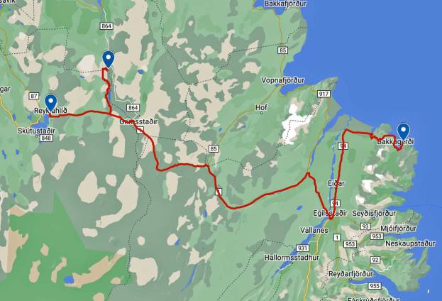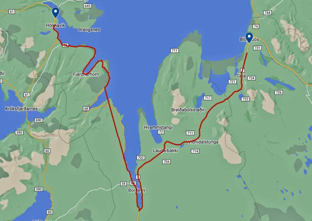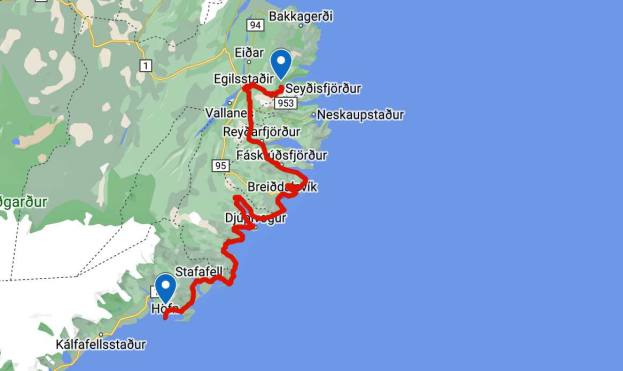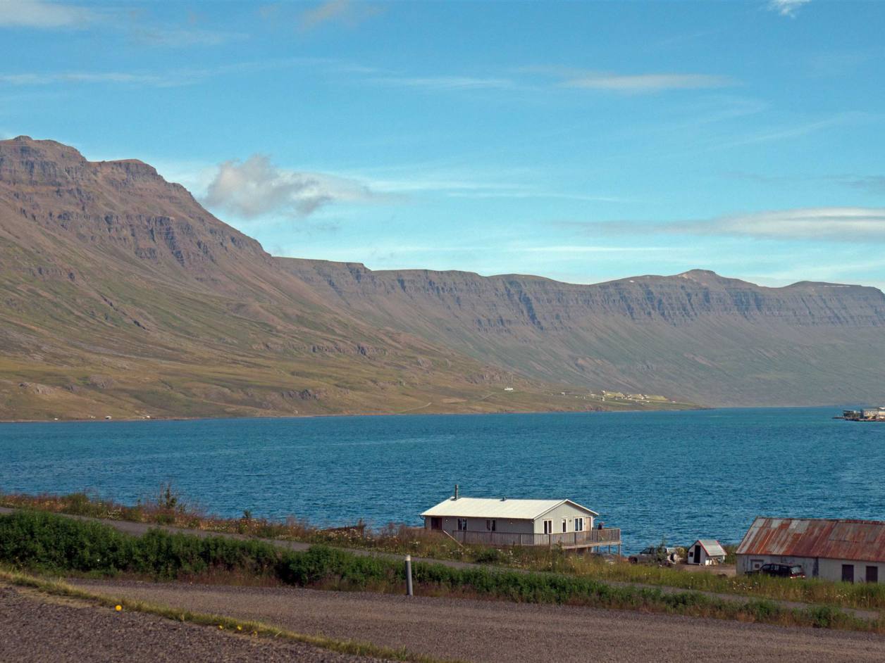 Unsere letzte Etappe in Island konnten wir bei schönstem Wetter fahren. Die Fahrt dem Meer entlang war einmalig. Bei diesem klaren Wetter leuchtete das Meer tiefblau. Die Berge an der linken Seite wechselten Farbe und Formationen im Minutentakt. Die Strecke war lang aber abwechslungsreich. Wir hatten unterwegs nichts besonderes zum Stoppen und anschauen. So nahmen wir es gemütlich wurden aber im laufe des Morgens von heftigen Windböen gebeutelt. Ich musste meine 30 m2 Seitenfläche verteidigen um nicht ab einer Brücke zu fliegen. Wir haben gestern Abend noch erfahren, dass die Fähre nicht wie vorgesehen am Donnerstagmorgen fahren wird. Sie musste gestern zwischen Bergen und Hirtshals stoppen und warten bis der Sturm vorbei war. Sie ist nach Stand heute wieder in Hirtshals ausgelaufen und wird am Freitag uns abholen.