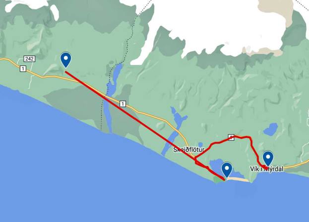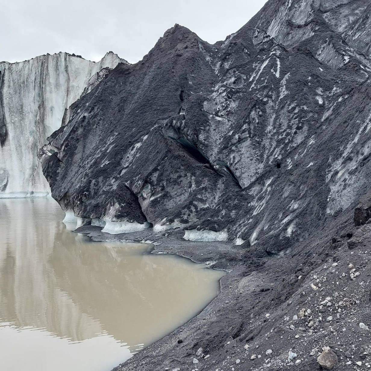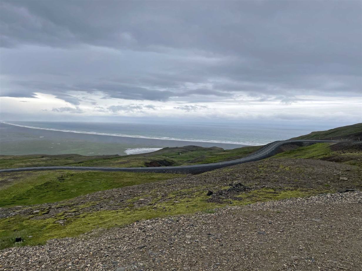 Die Fahrt führte heute weiter dem Meer entlang. Nur gerade 6 km lang war die erste Fahrt. Wir sind an der Gletscherzunge des Solheimajökull. Er ist unfassbar reich an dramatischen Eisformationen inklusive Schluchten, zerklüfteten Spitzen und Senken. Sólheimajökull ist eine Gletscherzunge oder ein Ausläufer des Mýrdalsjökull-Gletschers, dem viertgrößten Gletscher in Island, unter dem der mächtige und gefürchtete Katla Vulkan ominös unter der Eisdecke lauert. Man kann auf einem gut ausgebauten Weg bis zum Schnee laufen. Die Aussicht ist sehr schön. Leider ist dieser Gletscher wie andere auch in 10 Jahren um 1.0 km zurückgegangen.