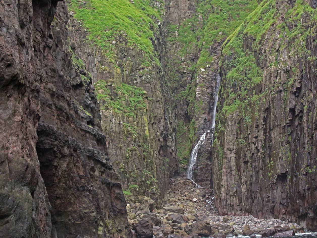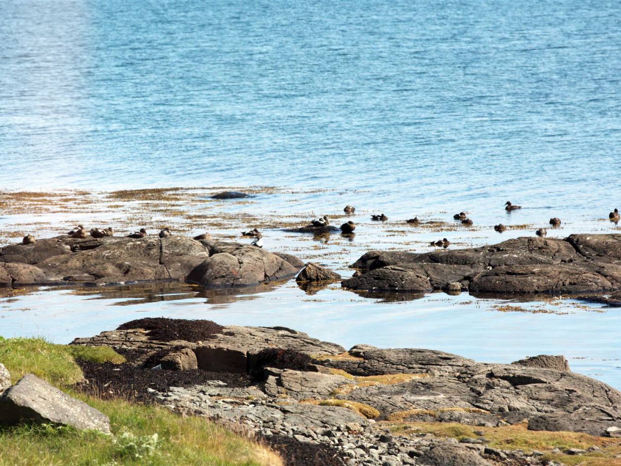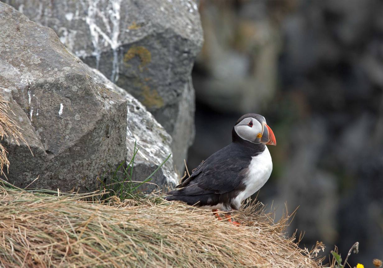Wenn man vom Parkplatz Richtung Meer läuft sieht man eine Kolonie Papageientaucher die sehr zutraulich sind und sich an den vielen Touristen erfreuen. Lunden wie sie auch genannt werden haben Entenfüsse und einem überdimensional bunten Schnabel. Lunden sind eine der wenigen Vögel, die mehrere kleine Fische quer im Schnabel tragen können, dank eines einzigartigen Gelenkes an ihren Schnäbeln. Dieses Gelenk erlaubt das die obere Schnabelhälfte und die Untere sich in verschiedenen Winkeln treffen, anstatt nur gerade sich schneiden. Die raue Zunge der Lunden kann die Fische an den Rücken des Gaumens drücken, während der Schnabel sich öffnet um noch mehr Fische zu fangen. Lunden können bis zu einer Minute lang tauchen, obwohl sie in der Regel nur etwa 30 Sekunden unter Wasser bleiben. Unter Wasser, lenken sie mit ausgebreitenden Flügeln, dies sieht aus als würden sie fliegen, während die Beine als Ruder dienen. Die Vögel können bis zu 60 Meter tief tauchen.